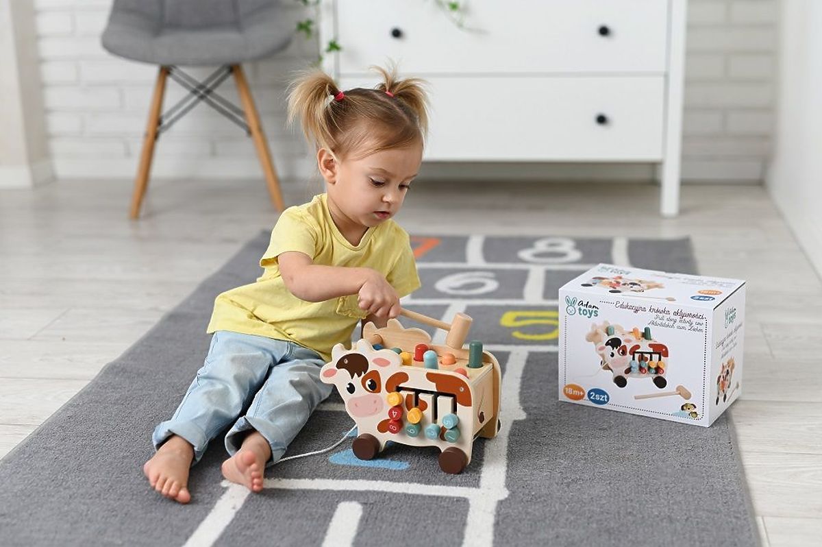 Grâce au jeu avec la vachette, l'enfant développe sa curiosité naturelle, apprend à penser de manière créative et développe son imagination. Les belles couleurs et la finition esthétique du jouet influencent fortement la perception de l'enfant, l'habituant à de nouvelles nuances. La douce vachette est un jouet en bois qui non seulement amuse et éduque, mais plaît également beaucoup aux enfants.