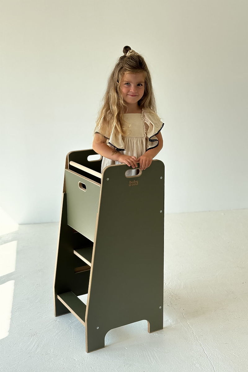 La tour d'apprentissage Comfort est un assistant de cuisine ingénieux qui permet aux enfants de se tenir en toute sécurité à la bonne hauteur et de participer activement aux activités quotidiennes de la cuisine. Sa conception stable et sa structure fermée offrent aux parents l'assurance que leur enfant est en sécurité pendant la cuisson, tout en encourageant son autonomie. Grâce à cet assistant, la cuisine devient un lieu de découverte, d'apprentissage et de plaisir partagés. Les enfants peuvent aider avec des tâches simples et acquérir progressivement de nouvelles compétences de manière naturelle et ludique.