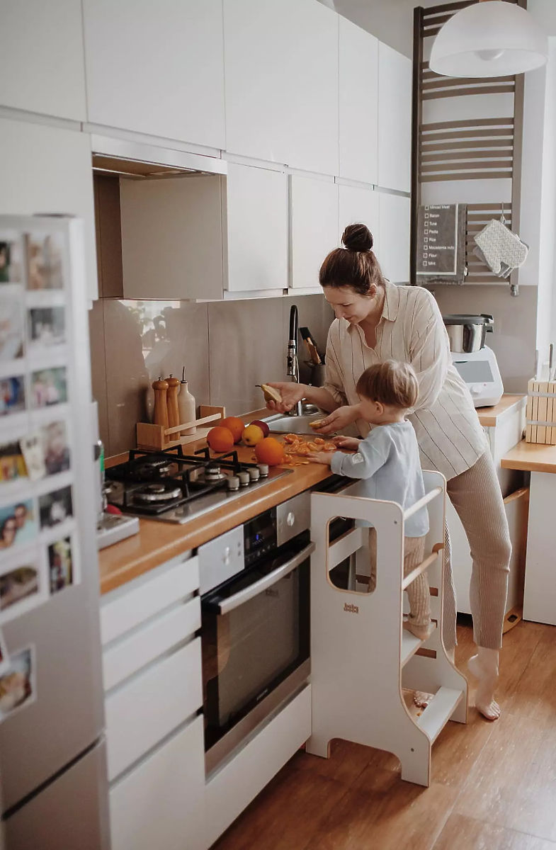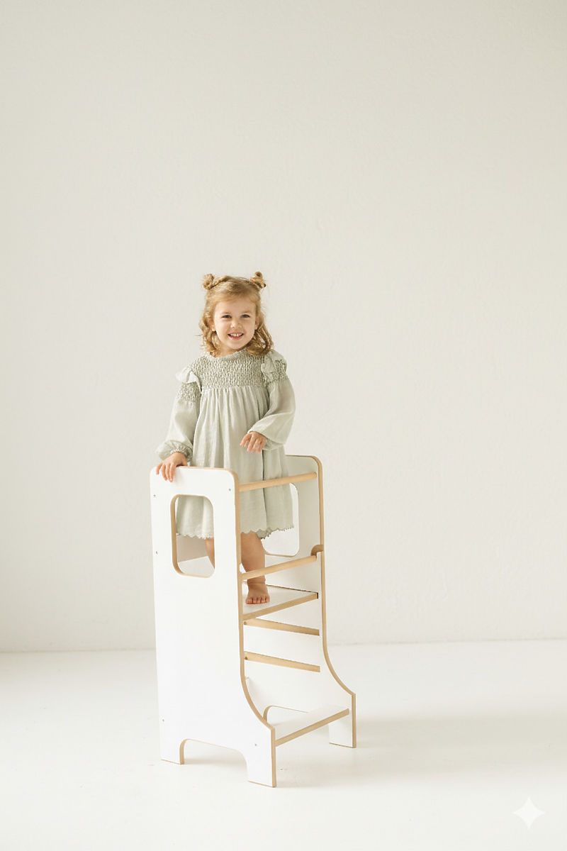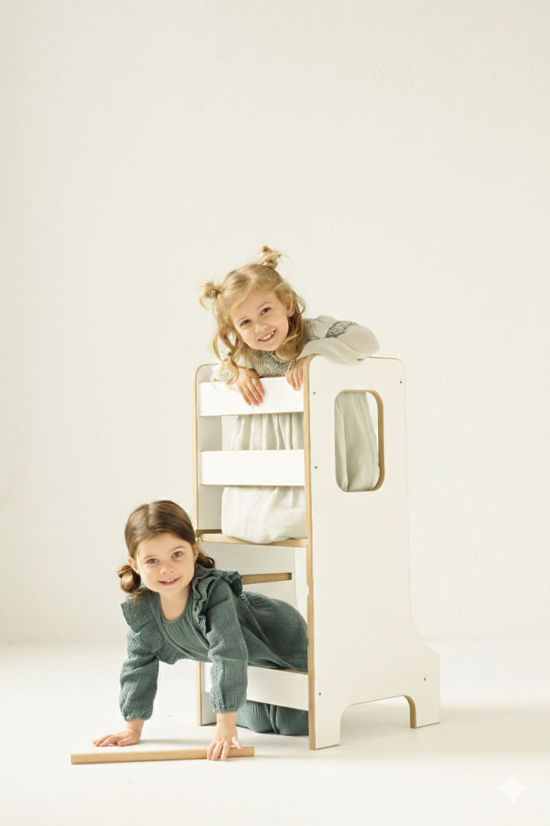 La tour d'apprentissage SLIM en couleur blanche est un choix idéal pour les parents qui souhaitent intégrer en toute sécurité leurs enfants dans les activités quotidiennes et leur permettre de découvrir activement le monde qui les entoure. Grâce à sa conception réfléchie, elle favorise l'autonomie, la créativité et le développement des compétences motrices, aidant les enfants à acquérir naturellement de nouvelles expériences. Les moments passés ensemble à cuisiner ou à réaliser d'autres activités deviennent ainsi des instants amusants et précieux. La version SLIM, avec son design élancé, est élégante et ne prend pas inutilement beaucoup de place, tout en restant stable et sécurisée. Les enfants peuvent grimper et descendre de la tour en toute sécurité, renforçant ainsi leur confiance en eux et leur indépendance.
