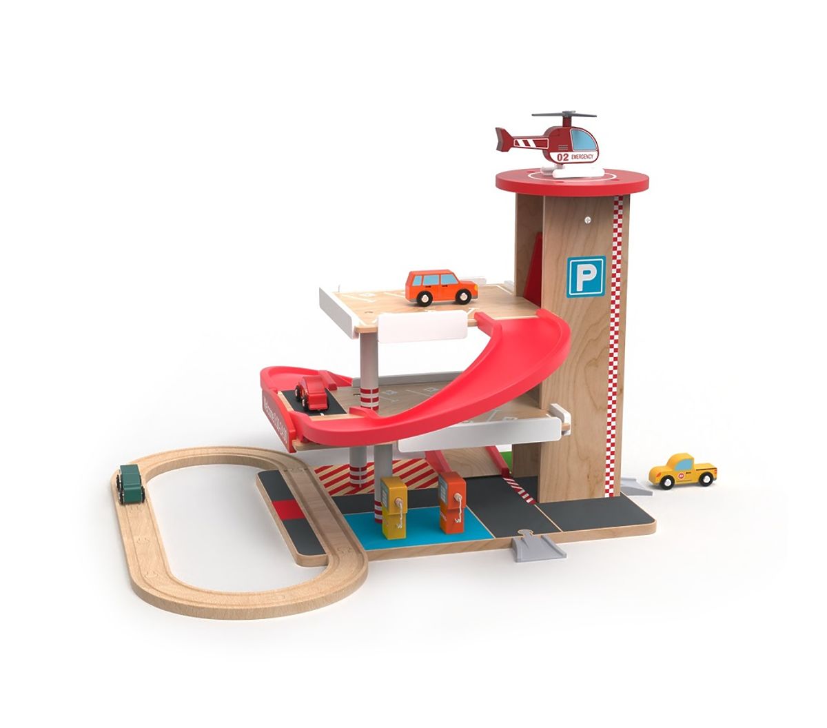 Les yeux de tous les passionnés d'automobiles s'illumineront en voyant le garage coloré avec ascenseur et héliport. Faites le plein de manière écologique à la pompe au rez-de-chaussée. Montez votre voiture à l'aide de l'ascenseur à manivelle et regardez-la dévaler la rampe et continuer sur la piste. Un accident s'est produit ? L'hélicoptère décolle déjà de l'héliport sur le toit. Ce jouet éducatif motive les enfants à jouer de manière créative et imaginative. Il développe la coordination œil-main, la motricité fine et l'habileté. Le garage avec ses aires de stationnement sur trois niveaux comprend également 4 petites voitures et un hélicoptère. Principales caractéristiques : garage avec héliport et ascenseur, 3 aires de stationnement, 4 petites voitures, 2 pompes à carburant, 1 borne électrique, hélicoptère, rails inspire à un jeu créatif et imaginatif développe la coordination œil-main, la motricité fine et l'habileté