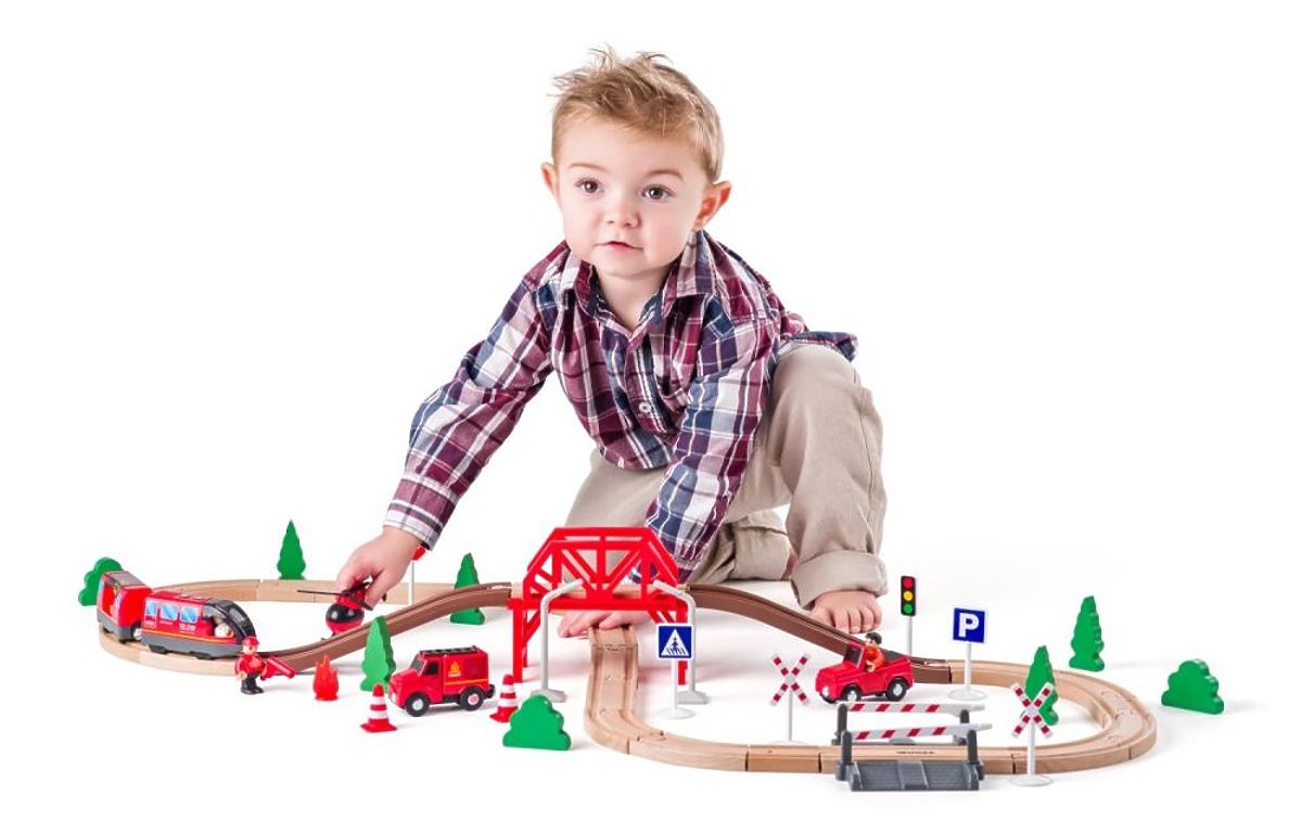 Le circuit en bois du fabricant tchèque de jouets Woody est un choix fantastique pour tout enfant de trois ans qui rêve de devenir pompier à l'avenir. L'ensemble comprend non seulement toute l'infrastructure ferroviaire avec un pont, des panneaux de signalisation et des barrières, mais aussi quatre véhicules indispensables aux pompiers pour intervenir lors de diverses missions spéciales.
