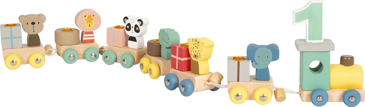 Faites sourire les jeunes enfants avec ce train d'anniversaire dont les passagers sont des animaux de la jungle. Les animaux, conçus avec amour, apportent des bougies d'anniversaire sur leurs wagons. Les enfants peuvent librement placer 6 animaux sur 6 wagons. Dans la locomotive, les enfants peuvent insérer des chiffres de 1 à 9. Les wagons peuvent être facilement attachés ou détachés à l'aide de petits crochets et œillets. De plus, les animaux peuvent être utilisés pour inventer d'autres jeux lorsqu'ils descendent du train. Ou les enfants peuvent simplement jouer et inventer leurs propres histoires. Le jouet est idéal pour les enfants à partir de 24 mois. Grâce à la grande quantité de bois naturel combinée à des couleurs modernes, ce train d'anniversaire est un véritable attrait et une décoration agréable sur chaque table d'anniversaire. L'emballage comprend : 6 animaux, 6 wagons, locomotive avec chiffres de 1 à 9. Principales caractéristiques : décoration d'anniversaire mignonne, stimule l'imagination
