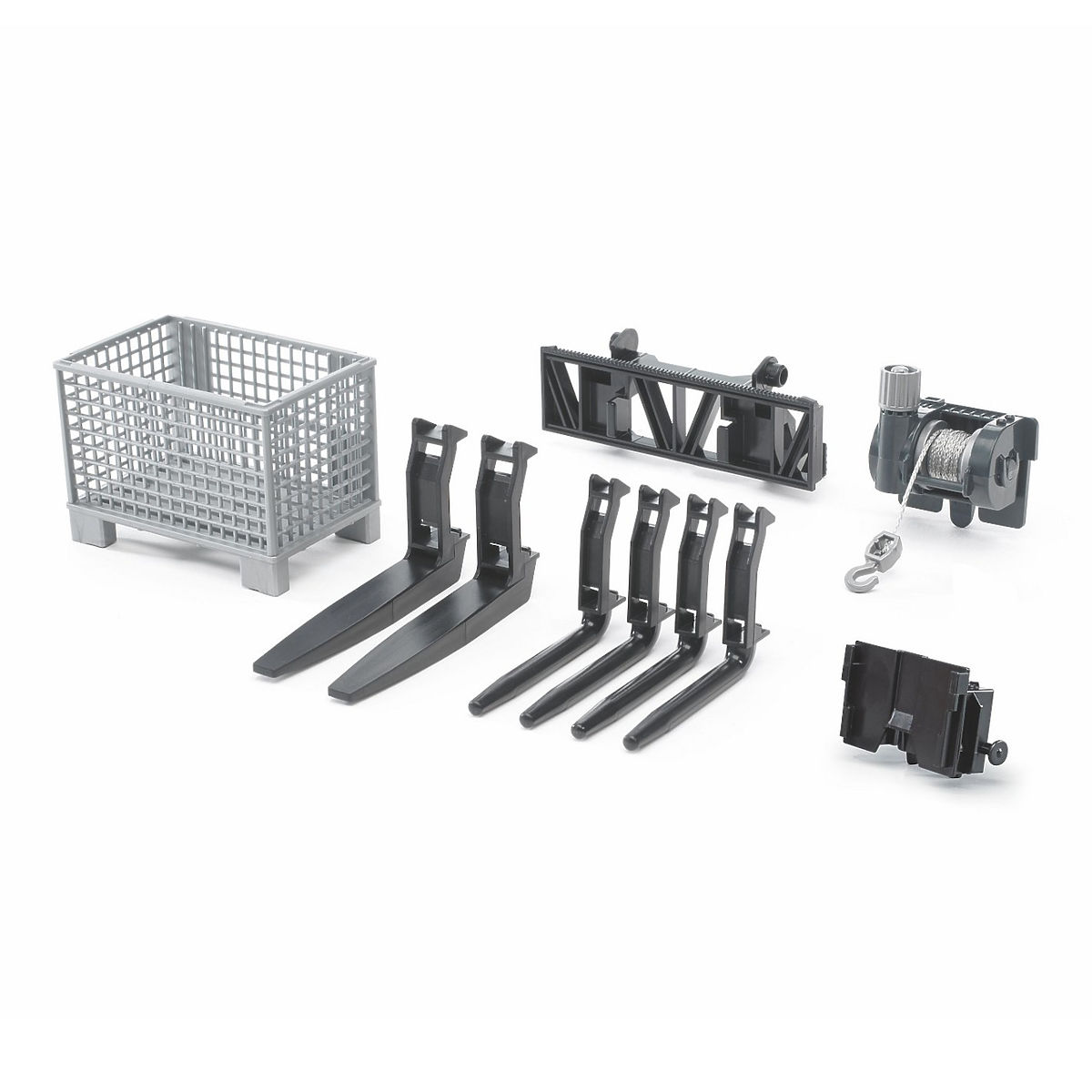 Un ensemble qui vous permet de transformer les chargeurs en manipulateurs avec des palettes et des paniers à palettes, ou il est possible d'utiliser le treuil pour une traversée de terrain presque illimitée. L'ensemble a été fabriqué à l'échelle 1:16 par rapport aux composants réels comme une fidèle copie en plastique. Il s'agit d'une fabrication de très haute qualité de la société allemande BRUDER dans les moindres détails, fabriquée en Allemagne à partir de plastique ABS de haute qualité, un plastique flexible avec une surface brillante, sans aucune bavure ni débordement. Compatible avec les tracteurs Bruder : 2042, 2052, 2062, 2112, 3011, 3021, 3031, 3041, 3051, 3091, 3096. Compatible avec les machines Bruder : 2125, 2129, 2136, 2140, 2141, 2431, 2441, 3580.
