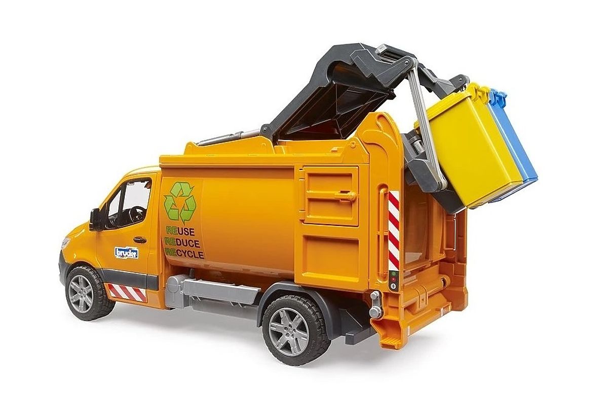 Efficace et fiable, c'est ainsi que Mercedes Benz décrit le nouveau Sprinter, qui vient maintenant élargir la gamme des camions poubelles de la marque Bruder. .. plus