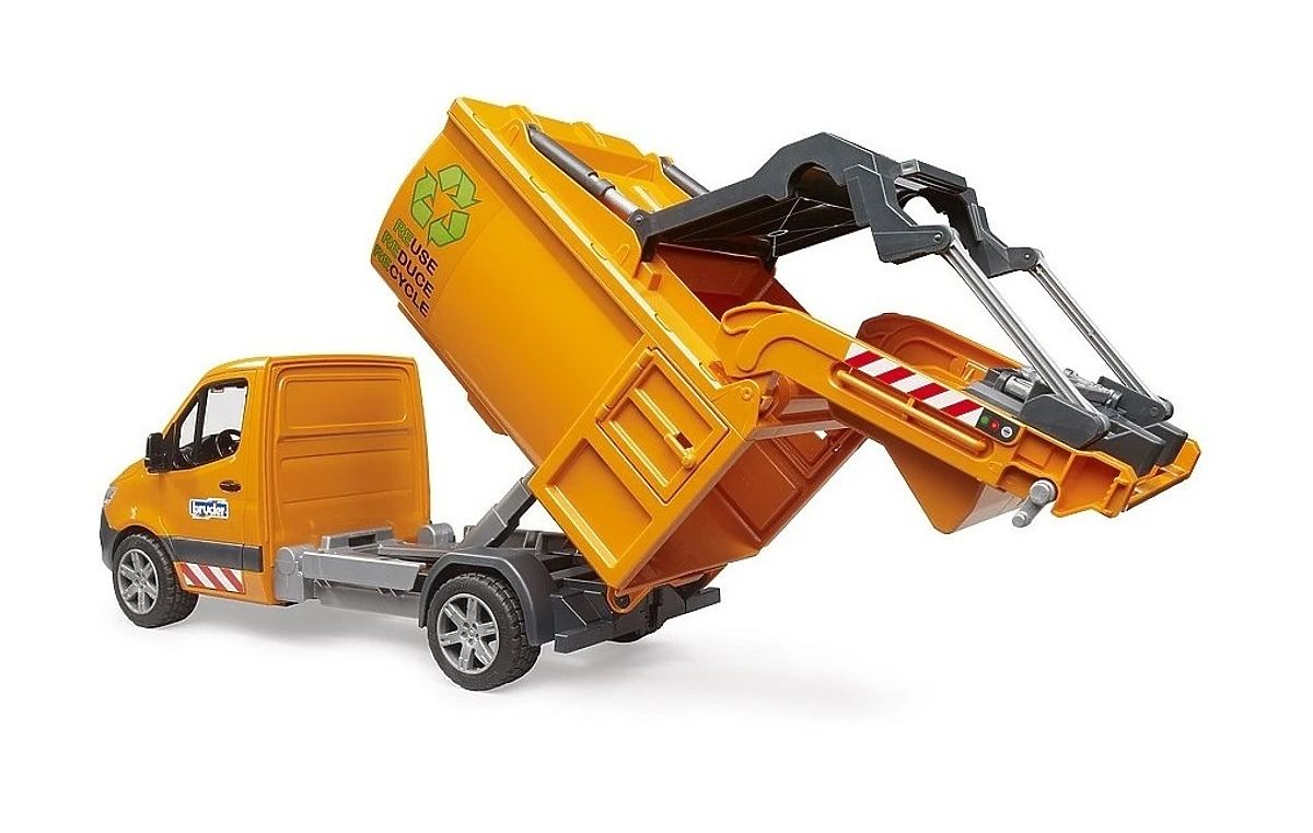 Efficace et fiable, c'est ainsi que Mercedes Benz décrit le nouveau Sprinter, qui vient maintenant élargir la gamme des camions poubelles de la marque Bruder. Il y a de nombreux endroits où un grand camion poubelle ne peut pas accéder, mais avec cette nouveauté, aucun endroit ne restera sans collecte des déchets. Tout comme un véritable camion poubelle, ce modèle de camion poubelle urbain peut gérer de petites poubelles, conteneurs ou bacs à déchets. Pour les sacs poubelles et les déchets oubliés, il y a deux rabats latéraux. Pour vider les poubelles ou conteneurs, le rabat du toit du véhicule s'ouvre automatiquement lors du levage des poubelles pour les vider. Après le vidage et la descente des poubelles, le rabat se referme. Le véhicule se vide en déverrouillant et en ouvrant les portes arrière battantes et en basculant la carrosserie du véhicule. Principales caractéristiques : portes ouvrantes, fenêtres en plastique transparent et trempé, benne basculante, pneus profilés, 2 poubelles, fabriqué en plastique ABS de haute qualité, compatible avec les figurines BWORLD, fabriqué en Allemagne.