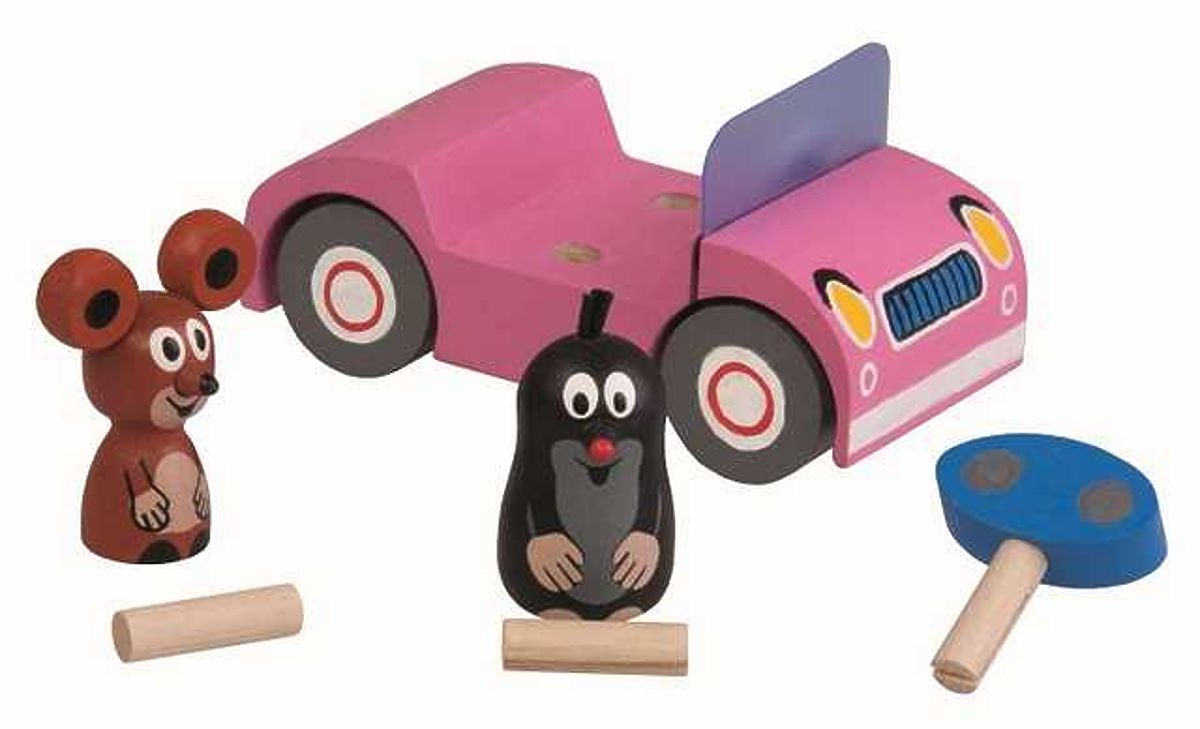 La Petite Taupe avec son amie la Souris dans une petite voiture rose en voyage. Les figurines et la clé peuvent être retirées et échangées à volonté. Principales caractéristiques : le produit répond aux exigences de sécurité des jouets de l'UE, adapté aux enfants à partir de 3 ans © Zdeněk Miler