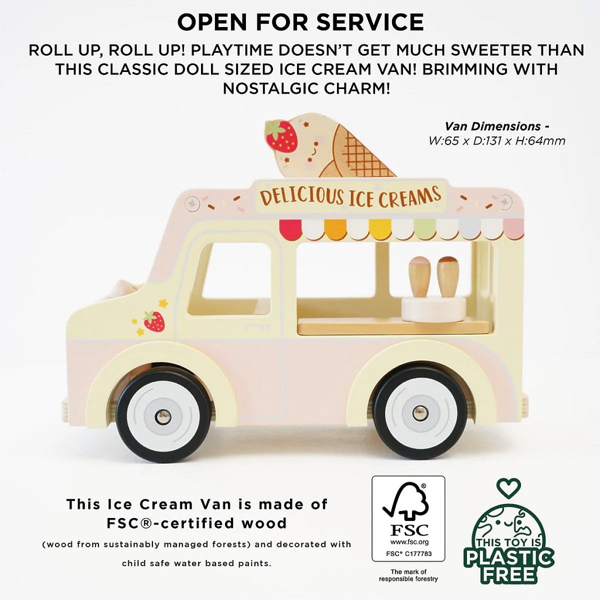 Deux boules, s'il vous plaît ! Avec le mini camion de glace, les enfants profiteront d'un amusement sucré. Ce jouet au style vintage possède de nombreux éléments interactifs, y compris des autocollants que les enfants peuvent utiliser pour décorer le camion. Le toit amovible et la fenêtre avec comptoir de service sont parfaits pour les jeux de rôle. Fabriqué en bois de caoutchouc durable et durable, il convient non seulement aux maisons de poupées de Le Toy Van. Convient pour les figurines jusqu'à 10 cm. Jouets avec un but Tous les jouets de la société Le Toy Van sont fabriqués pour durer. Conçus avec amour par des artisans expérimentés utilisant des pratiques éthiques et des matériaux durables, qui sont plus respectueux de notre planète. Principales caractéristiques : fabriqué de manière éthique à partir de bois durable testé selon les normes les plus strictes peint avec des peintures à base d'eau non toxiques inspire le jeu imaginatif développe les compétences cognitives. Le jouet a remporté le prestigieux prix du jouet de l'année Right Start Best Toy Awards Winner. Collection Daisylane : Collection prestigieuse de maisons de poupées et d'accessoires de Le Toy Van. Il y a plus de 25 ans, le fondateur Georges a conçu sa toute première maison de poupées, la pierre angulaire de cette entreprise. Fabriquées de manière éthique à partir de matériaux durables, les maisons de poupées en bois Daisylane sont uniques et ne freineront pas l'imagination des enfants. Un héritage familial, un véritable investissement dans le jeu. La marque et le certificat FSC® (Forest Stewardship Council) garantissent que le bois utilisé pour fabriquer le produit n'a pas été exploité illégalement et provient de forêts gérées de manière responsable ou proche de la nature, où des exigences environnementales et sociales strictes sont respectées. La marque FSC® sur le produit signifie qu'en achetant, vous contribuez à protéger les forêts et à soutenir une gestion responsable, durable ou proche de la nature, grâce à laquelle nos forêts sont plus stables, plus saines, ont une composition d'espèces naturelle et résistent mieux aux conséquences négatives des changements climatiques.