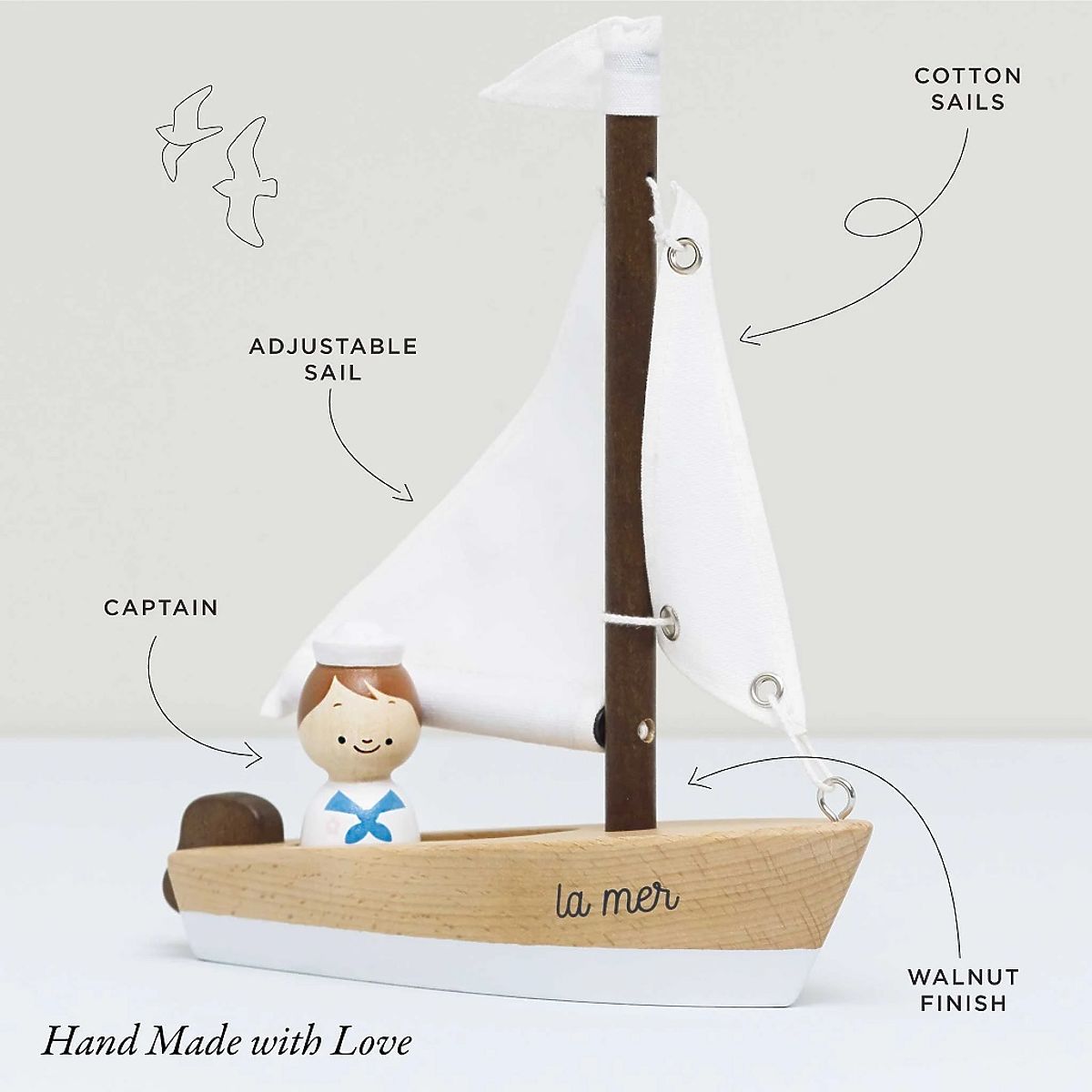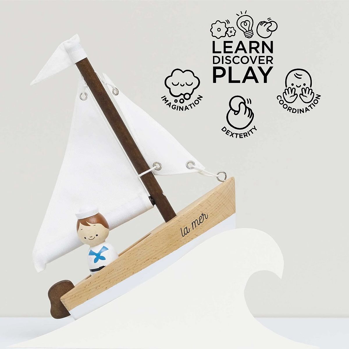 Partez en mer et découvrez de nouvelles aventures avec ce magnifique voilier qui brille d'un charme intemporel. Le voilier en bois est fabriqué à la main à partir de bois de hêtre certifié FSC®, certaines parties sont teintées couleur noyer, apportant ainsi une touche d'authenticité. Décoré avec des peintures à base d'eau non toxiques, sûres pour les enfants. Le drapeau et les voiles en coton flottent légèrement au vent, propulsant le bateau vers des horizons infinis, ce qui augmente la valeur ludique imaginative de ce jouet. Le bateau est accompagné d'un marin miniature en bois, qui porte un costume de marin peint à la main, rendant le jeu avec ce voilier encore plus amusant. Que le bateau soit utilisé comme élément décoratif ou comme jouet, il attire immédiatement l'attention de chaque enfant. Il aide à développer les compétences cognitives, la dextérité et la coordination œil-main. Jouets avec un butTous les jouets de la société Le Toy Van sont conçus pour durer longtemps. Conçus avec amour par des artisans expérimentés utilisant des pratiques éthiques et des matériaux durables, plus respectueux de notre planète. Caractéristiques principales : développe la dextérité, la coordination et l'imaginationfabriqué en bois certifié FSC®peint avec des peintures à base d'eau non toxiquestesté selon les normes les plus strictesjouet sans plastique La marque et le certificat FSC® (Forest Stewardship Council) garantissent que le bois utilisé pour fabriquer le produit n'a pas été récolté illégalement et provient de forêts gérées de manière responsable ou proche de la nature, respectant des exigences environnementales et sociales strictes. La marque FSC® sur le produit signifie qu'en l'achetant, vous contribuez à protéger les forêts et soutenez une gestion responsable, respectueuse ou proche de la nature, grâce à laquelle nos forêts sont plus stables, plus saines, ont une composition d'espèces naturelle et résistent mieux aux conséquences négatives des changements climatiques.