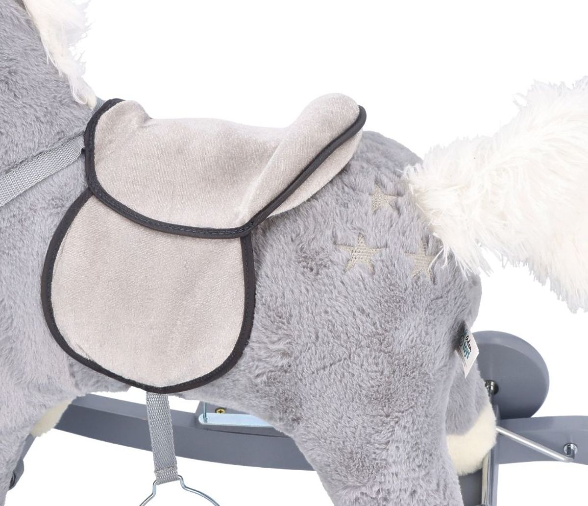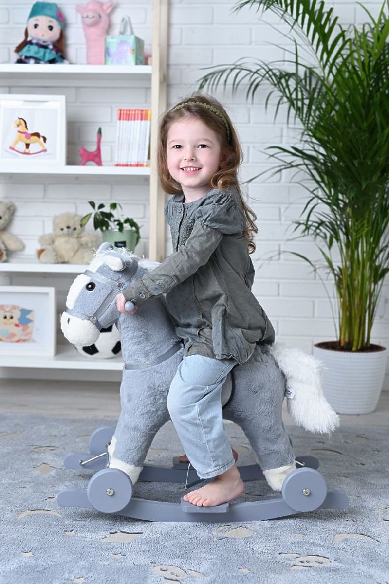 Le cheval à bascule gris avec roulettes est notre nouvelle version du jouet classique pour enfants. La tête du cheval est fabriquée en peluche douce, tandis que le corps et les jambes du cheval sont en polystyrène renforcé. Ce cheval sera le meilleur ami de votre enfant pour jouer à la maison. Siwek a été conçu pour les enfants qui aiment l'aventure.