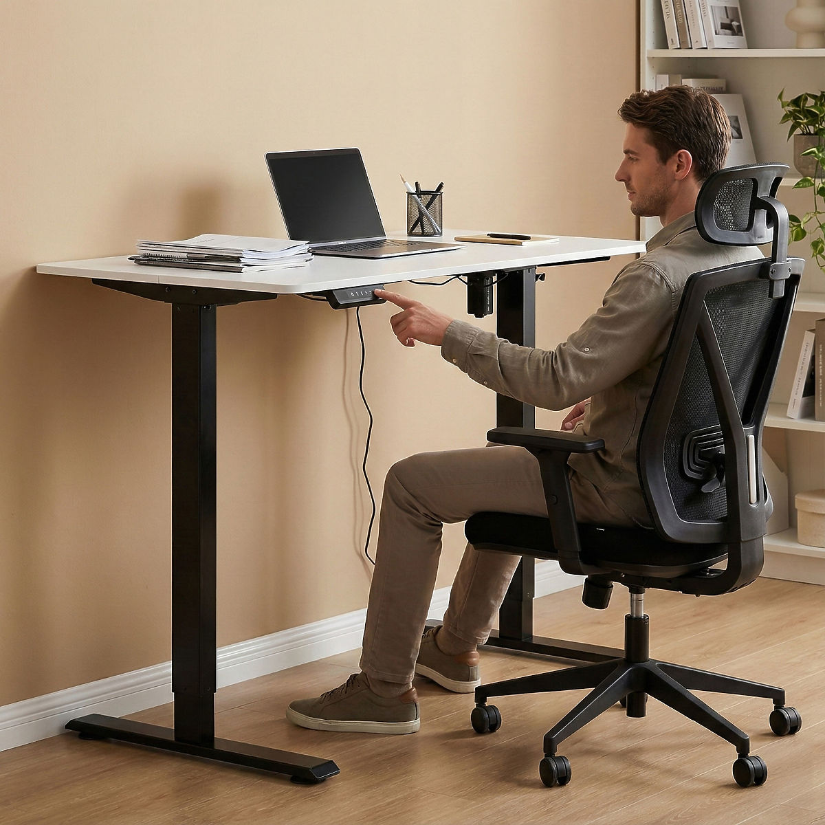 CONTRÔLE TOTAL À PORTÉE DE MAINLe panneau de contrôle intuitif avec boutons haut/bas permet de régler précisément la hauteur du plateau, et trois boutons numériques permettent de mémoriser les positions favorites. De plus, il est possible de programmer un rappel pour changer de position toutes les 30, 45 ou 60 minutes, ce qui encourage le maintien de bonnes habitudes de travail.