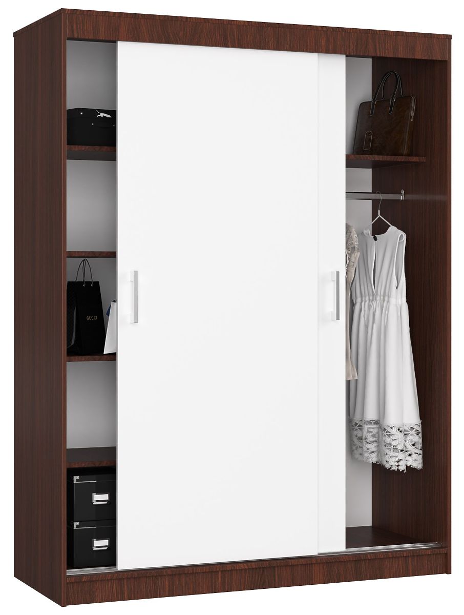 Armoire coulissante 150 cm CLP en wenge et blanc, spacieuse et fonctionnelle. .. plus