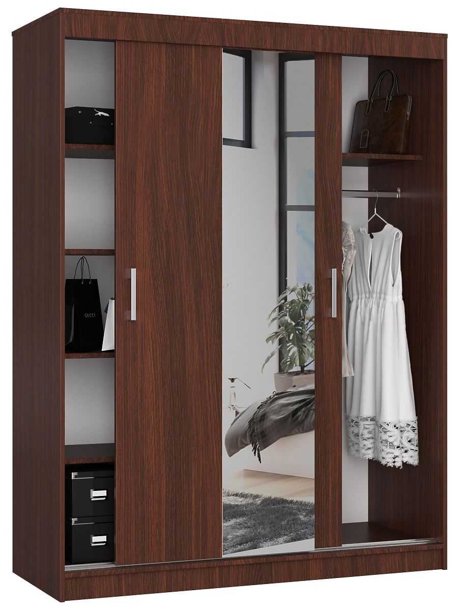 La grande armoire wenge offre de nombreux avantages découlant de son utilisation, car elle dispose de nombreuses solutions très utiles pour un usage quotidien. Il ne s'agit pas seulement du miroir qui nous permet de vérifier si notre tenue choisie convient, mais aussi, par exemple, de la tringle pour suspendre les vêtements et du grand nombre d'étagères. Parmi les autres avantages de ce produit, on trouve également :