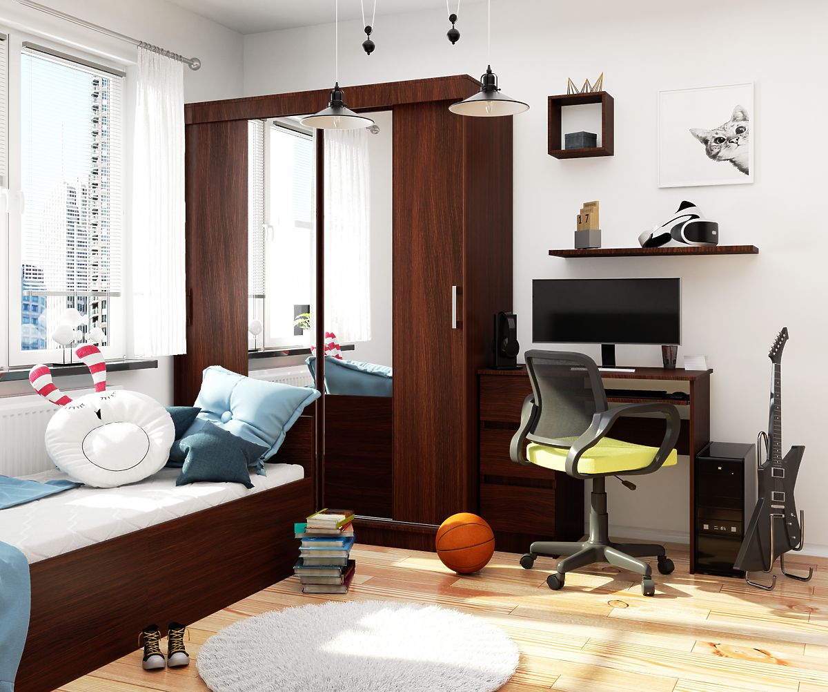 Banaby.fr » Meubles pour enfants / Commodes et armoires enfant / Armoires dressing enfant / ARMOIRE COULISSANTE 150cm CLP WENGE