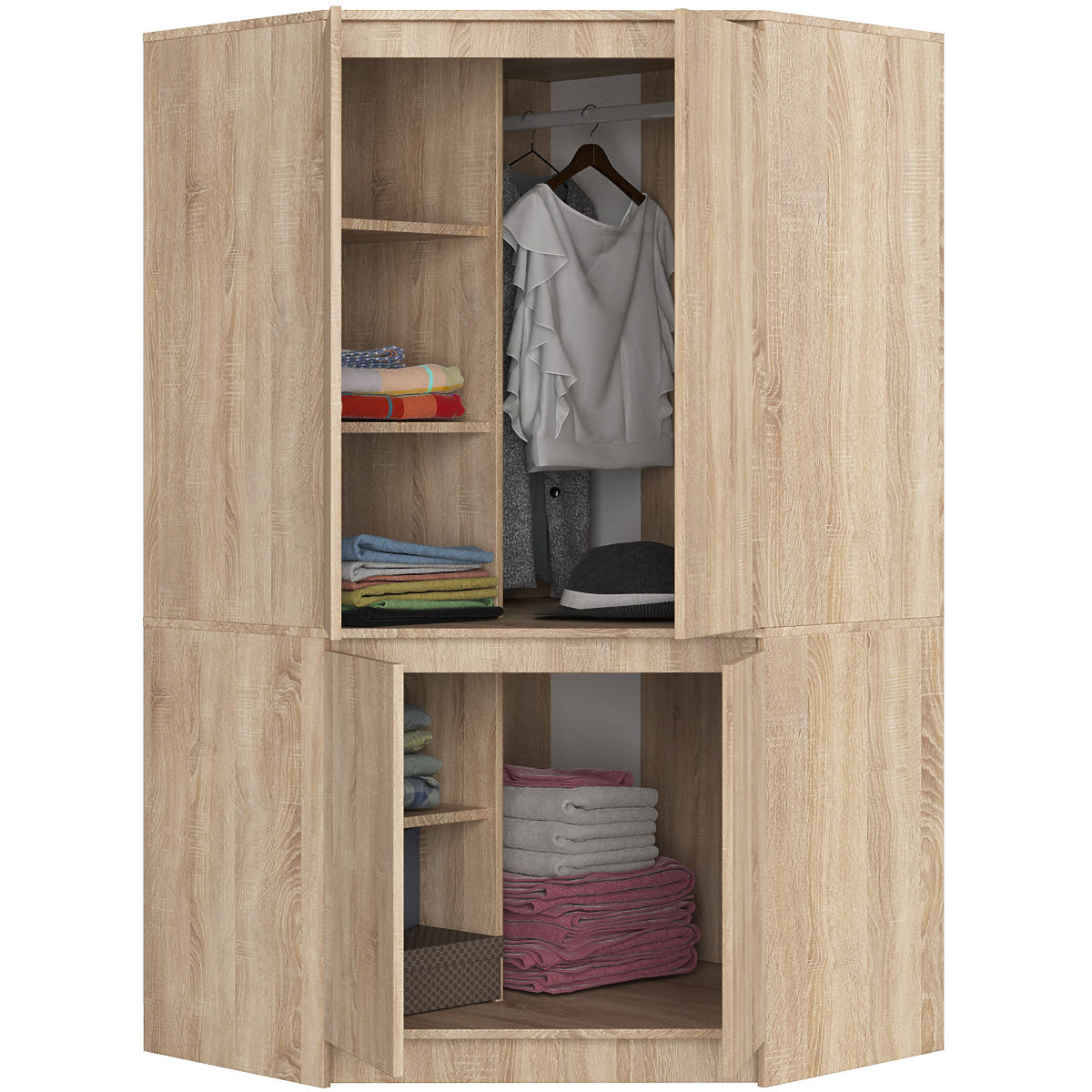 Armoire d'angle à quatre portes en chêne Sonoma avec tringle et 6 étagères. .. plus