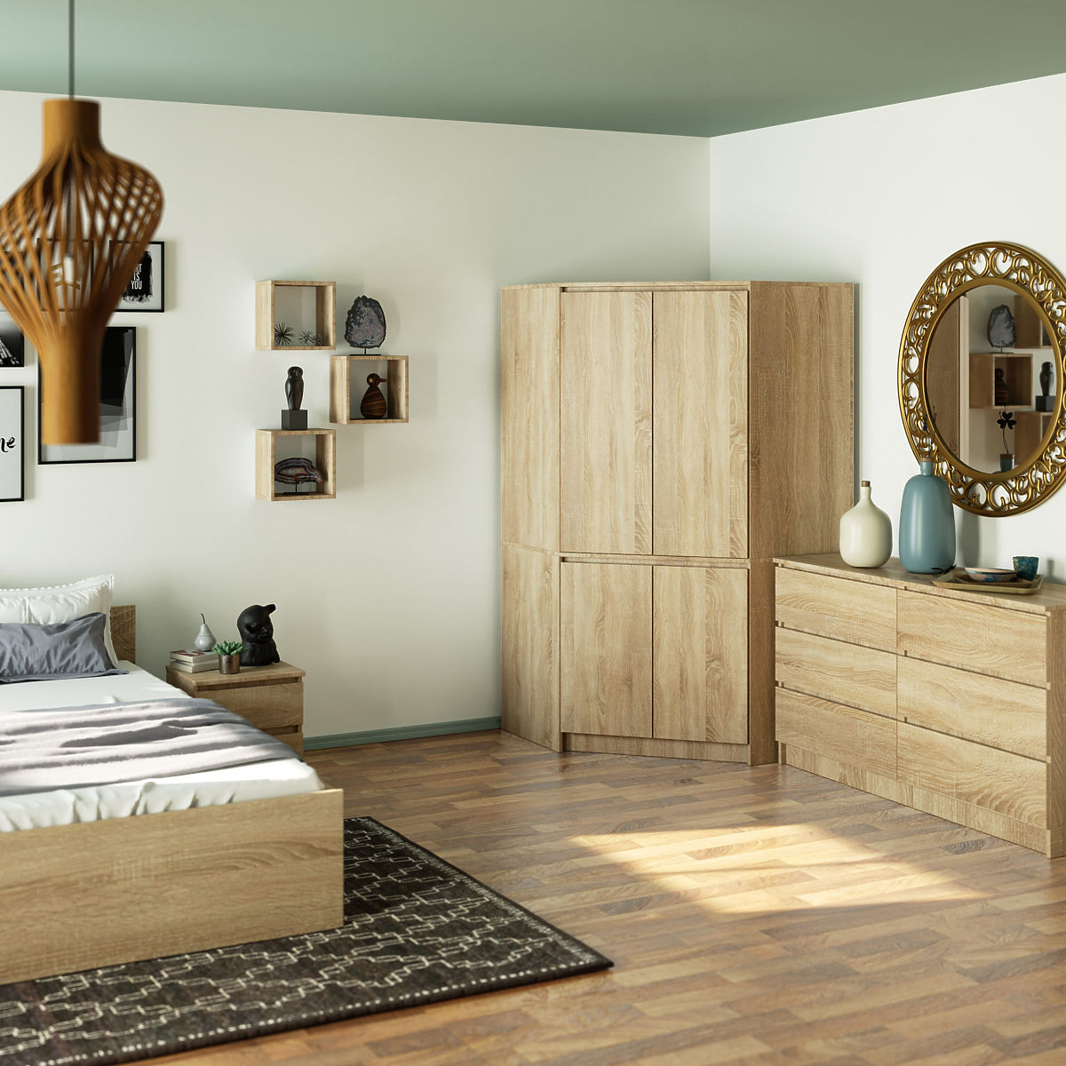 Banaby.fr » Meubles pour enfants / Commodes et armoires enfant / Armoires dressing enfant / ARMOIRE D'ANGLE S100 4D CLP CHÊNE SONOMA