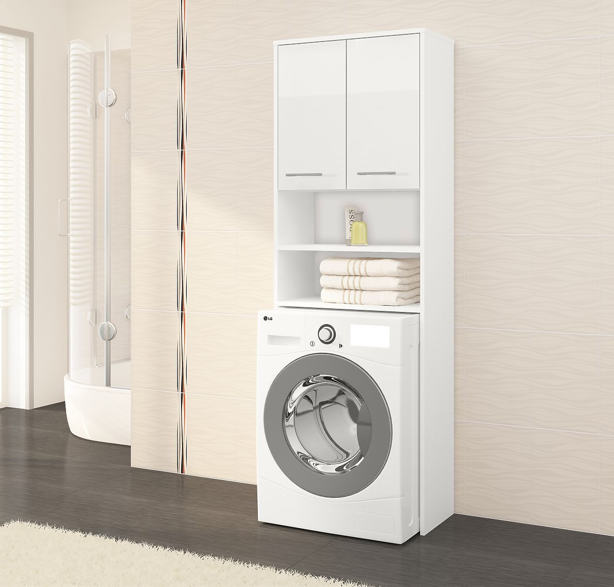 Banaby.fr » Meubles pour enfants / Commodes et armoires enfant / Armoires dressing enfant / ARMOIRE DE SALLE DE BAIN FIN AU-DESSUS DE LA MACHINE À LAVER BLANC BRILLANT