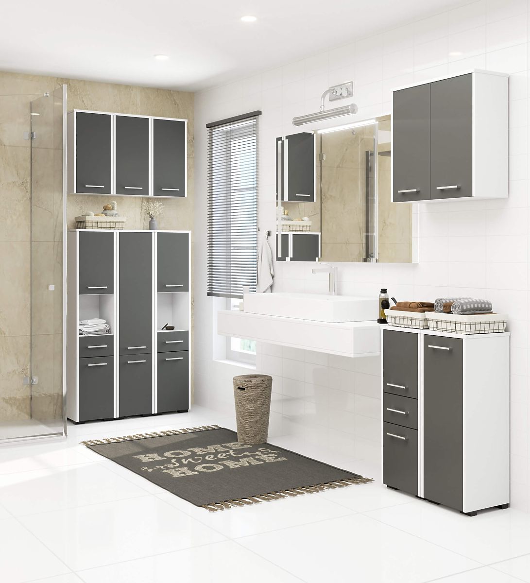 La salle de bain est une pièce qui doit être aménagée principalement de manière fonctionnelle. Un choix intéressant, idéal notamment pour les petits espaces, est l'armoire de salle de bain sur pied FIN S 30 cm. Le meuble combine deux couleurs universelles et intemporelles, le blanc et le gris graphite. La simplicité et l'élégance de ce design assurent sa popularité tant auprès des amateurs de style moderne, scandinave, que rustique ou classique. La construction solide se marie ici avec la fonctionnalité et le soin apporté à la fabrication du produit.
