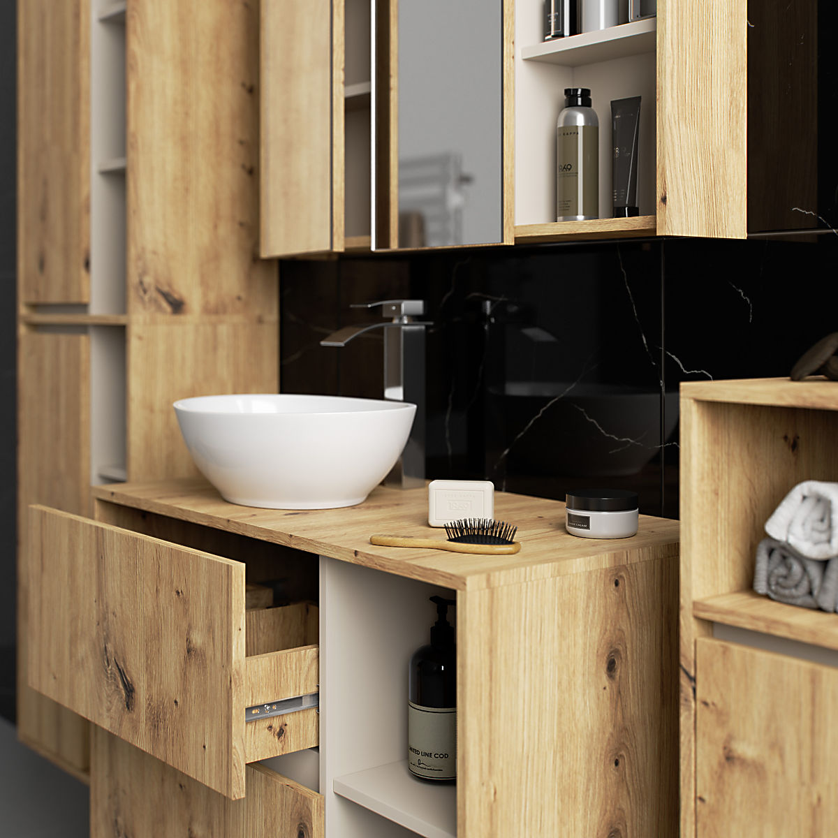 Banaby.fr » Meubles pour enfants / Commodes et armoires enfant / Armoires dressing enfant / ARMOIRE DE SALLE DE BAIN SUSPENDUE VAMI W35 1D 1W CHÊNE ARTISAN / CACHEMIRE