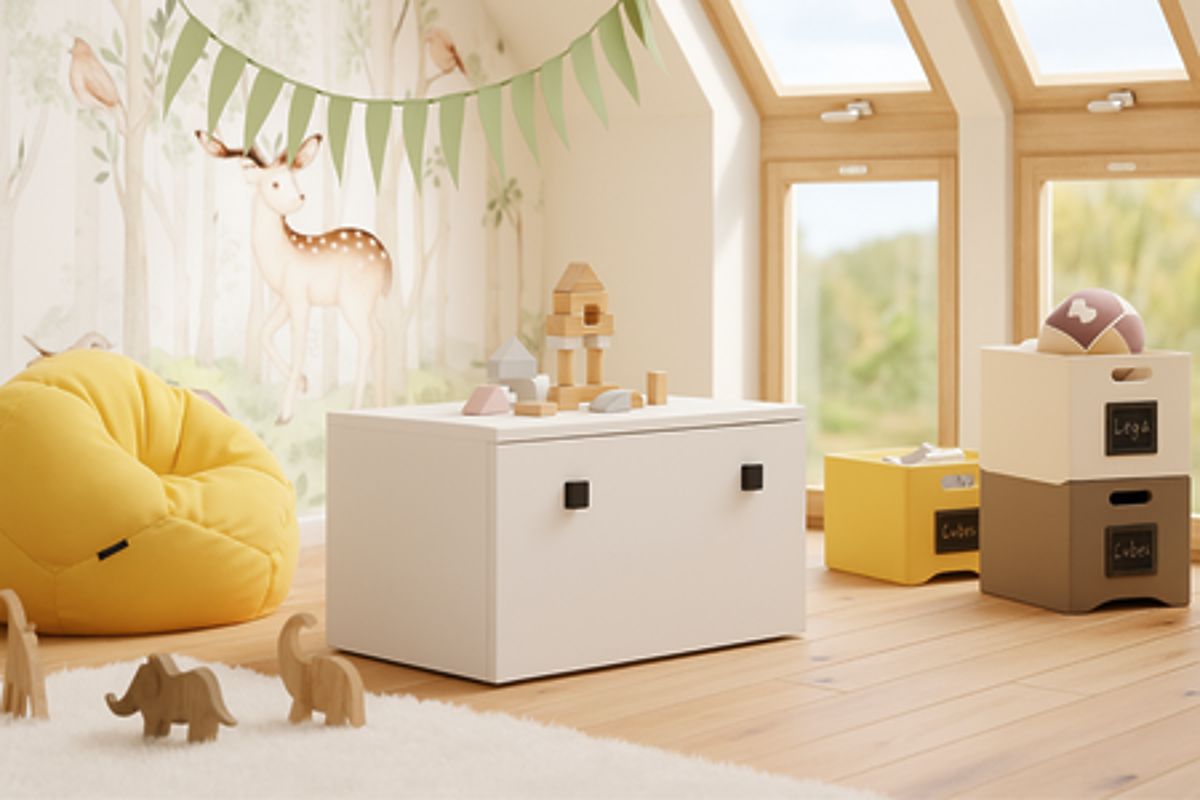 Coffre moderne et spacieux pour organiser jouets et textiles. .. plus