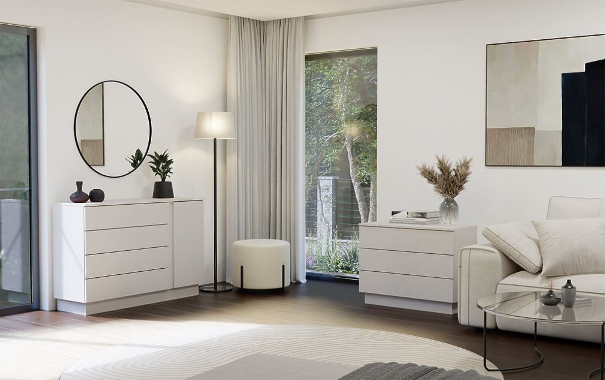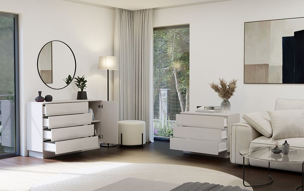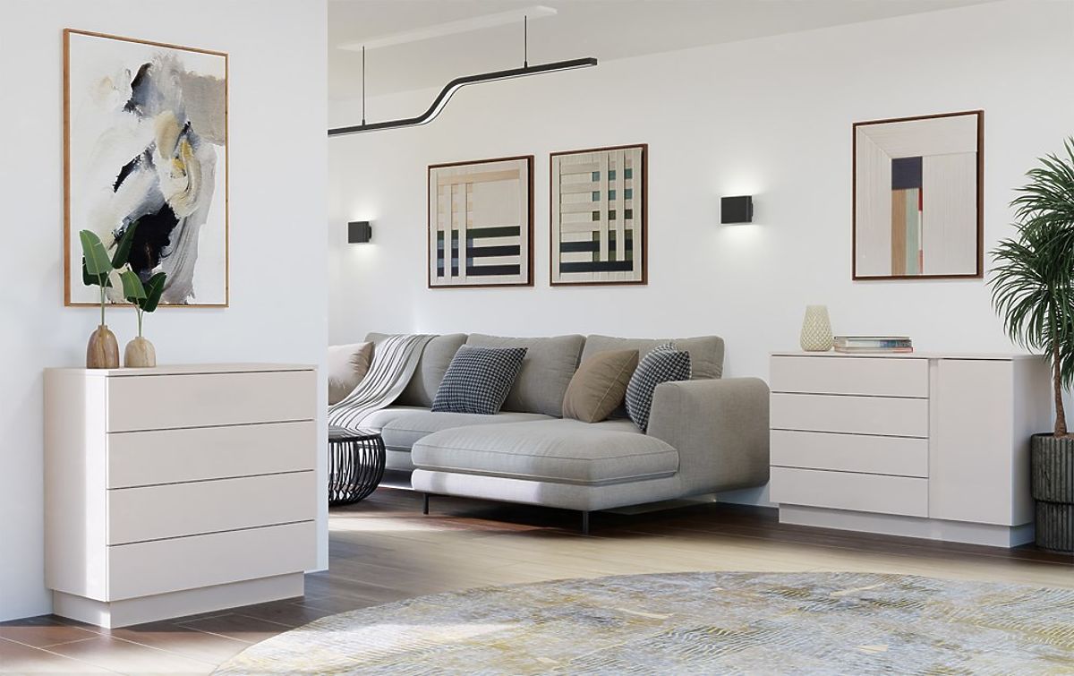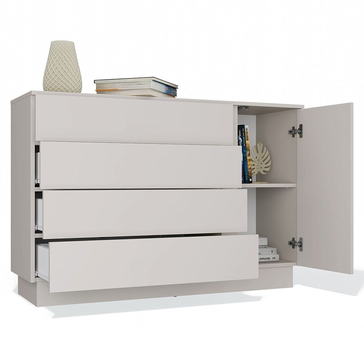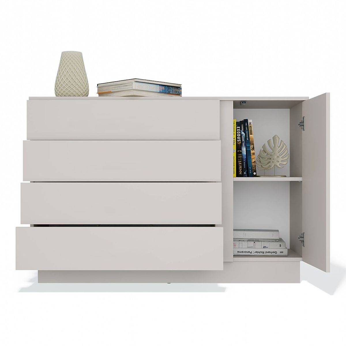 Commode moderne AMBER 1D4S avec 1 porte et 4 tiroirs en cachemire beige. .. plus