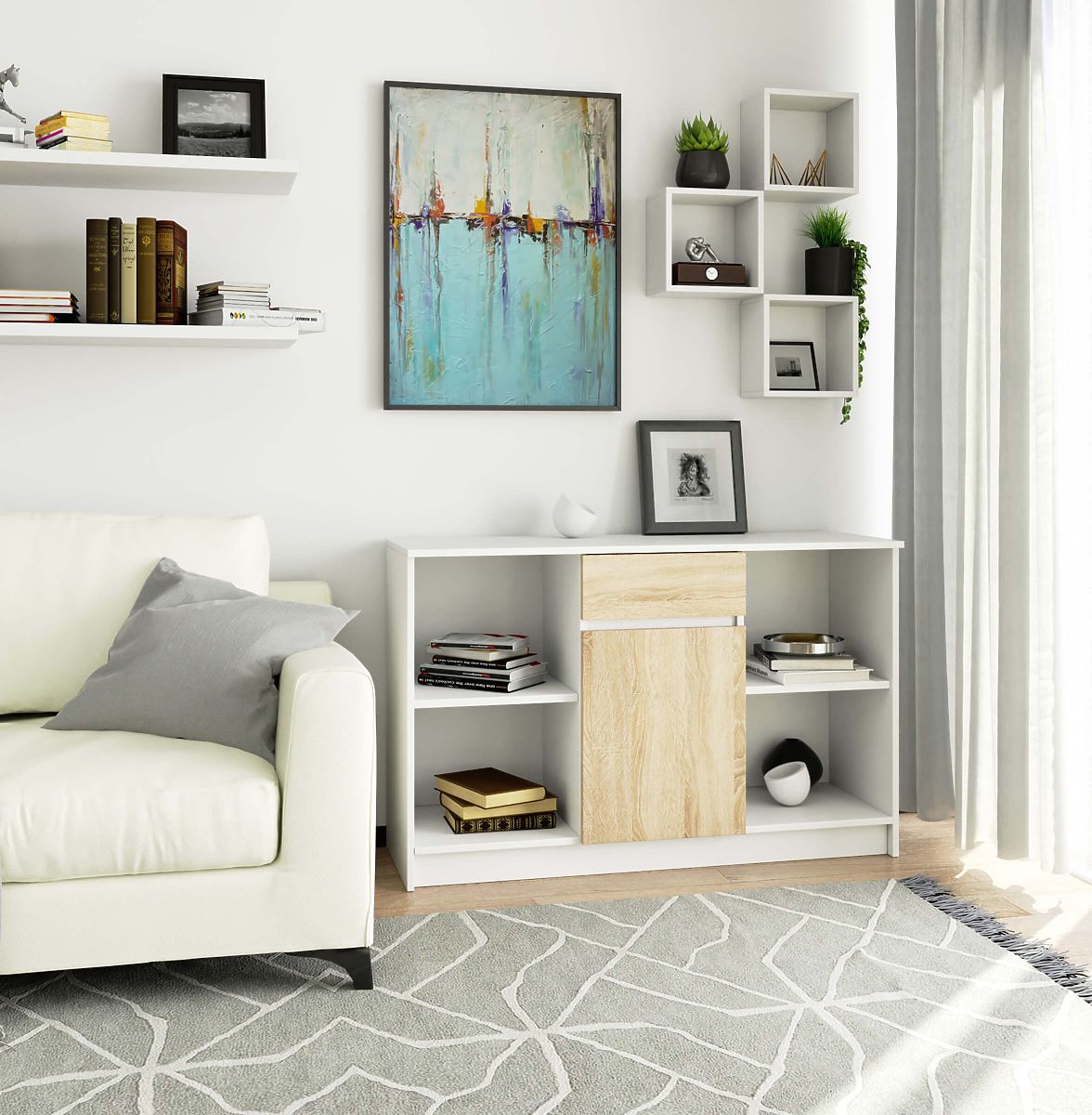 Commode de la série B-17 Blanc / Sonoma