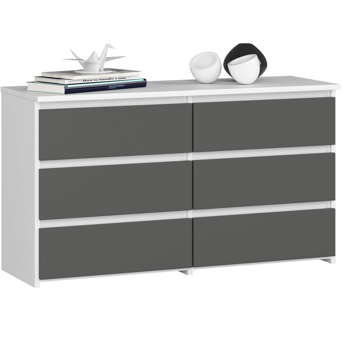 Commode blanche avec façades gris graphite et six tiroirs spacieux. .. plus