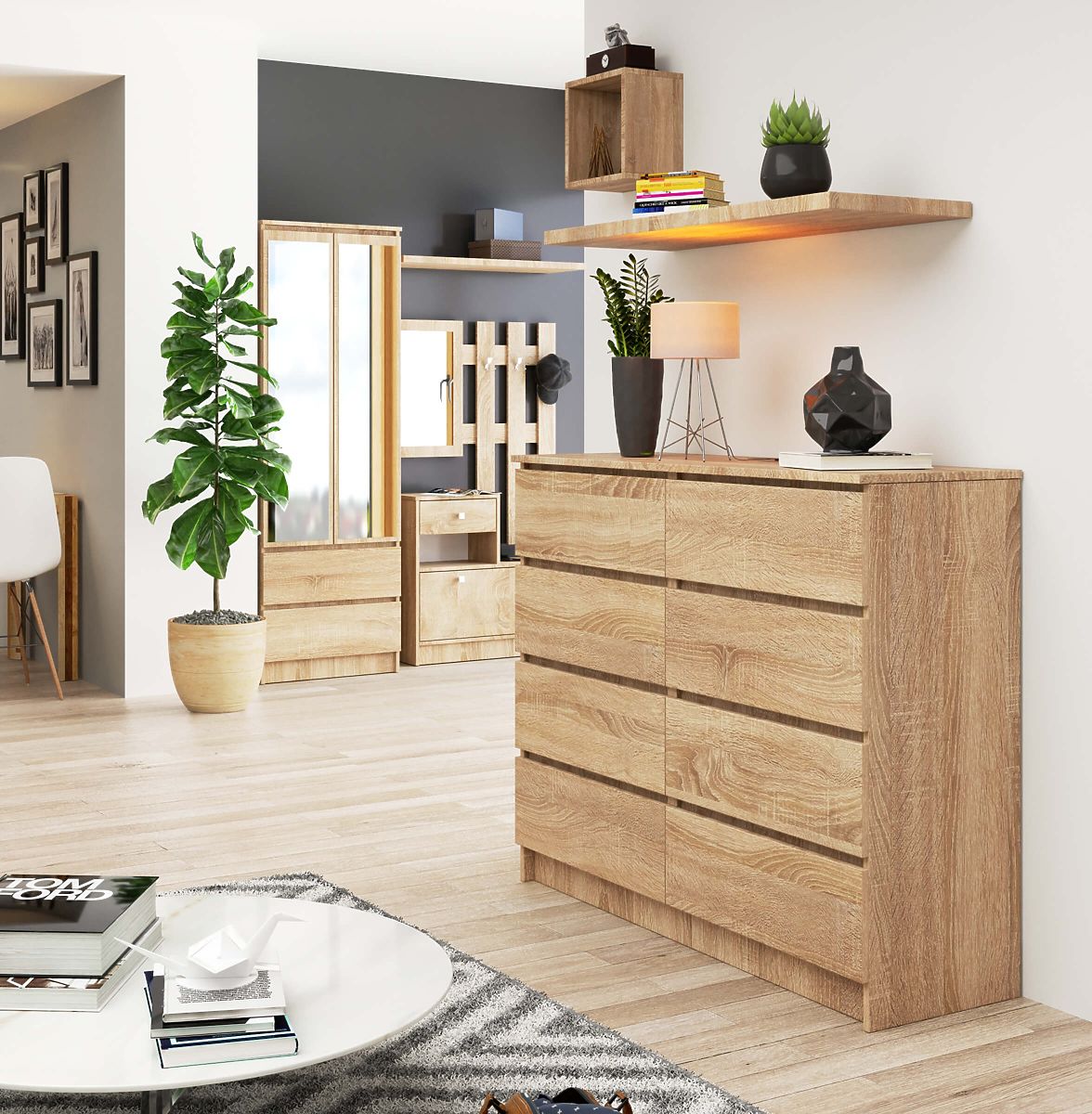 Commode K120 avec 8 tiroirs en chêne sonoma. .. plus