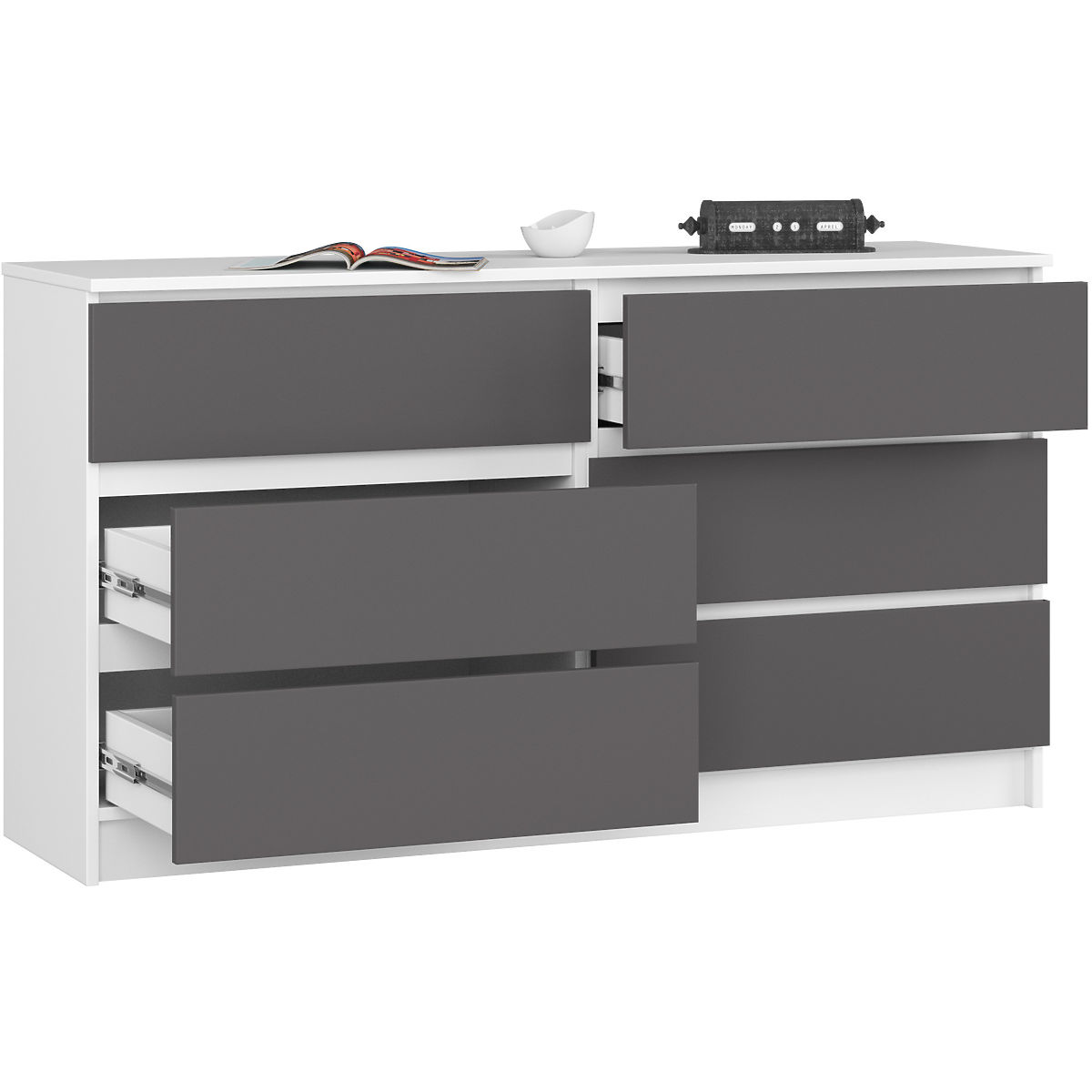 Banaby.fr » Meubles pour enfants / Commodes et armoires enfant / Commodes enfant / Commode K 140 cm 6 tiroirs PK blanc-gris graphite