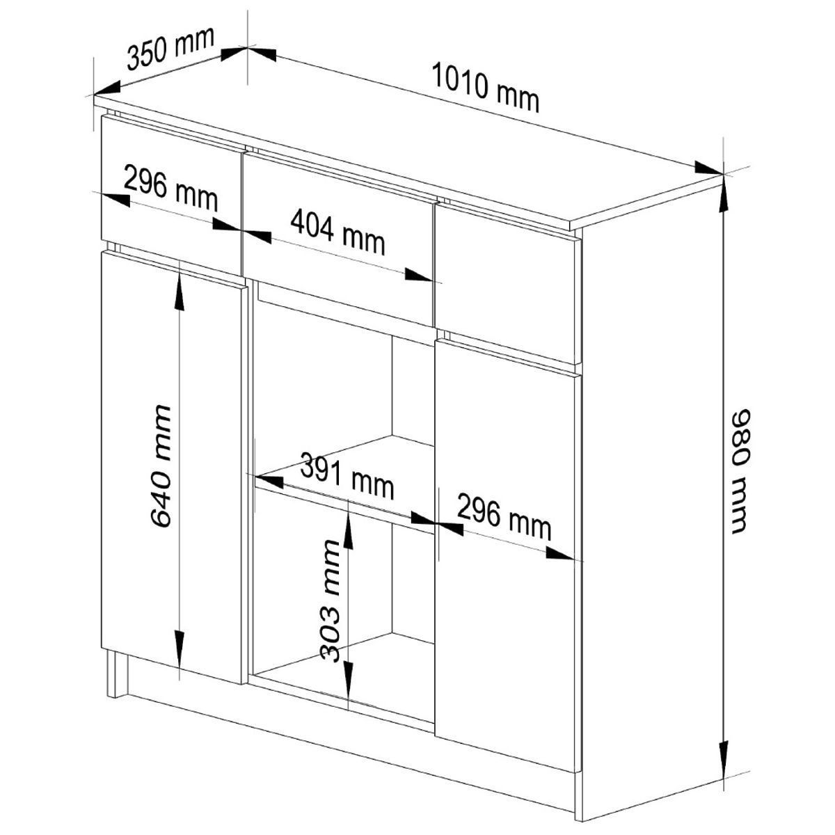COMMODE K100 Fabriquée en panneau laminé de 16 mm résistant à l'usure.