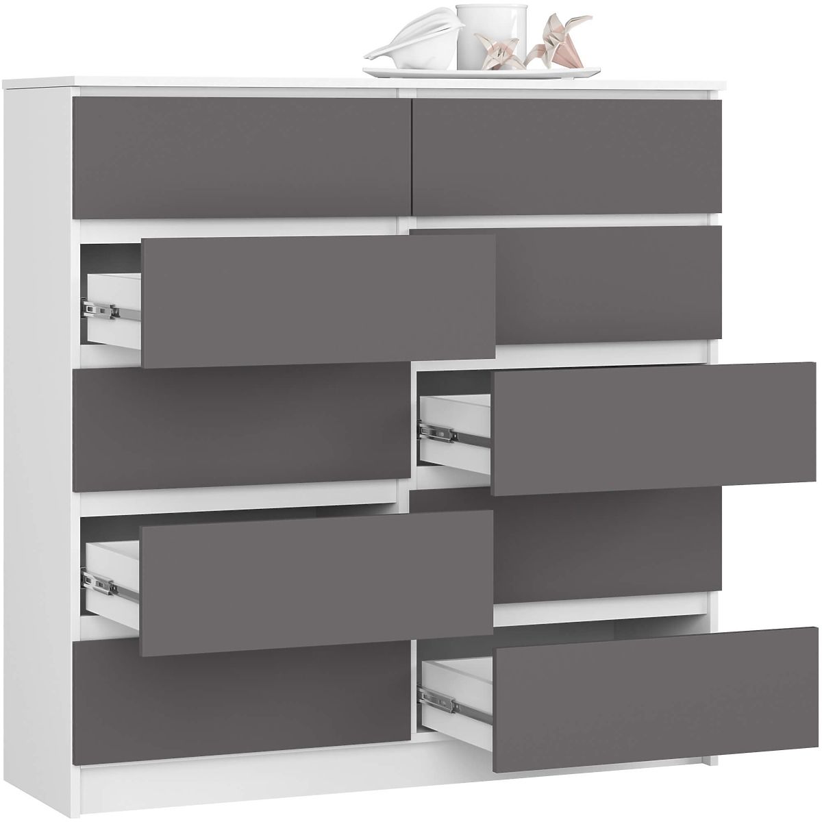 Commode avec 10 tiroirs, corps blanc et façades gris graphite. .. plus