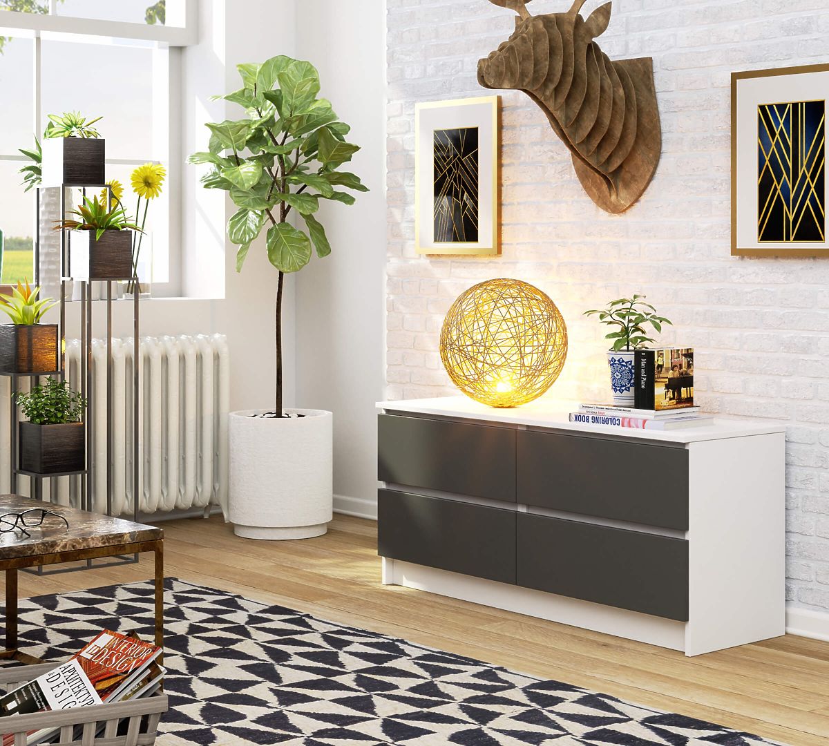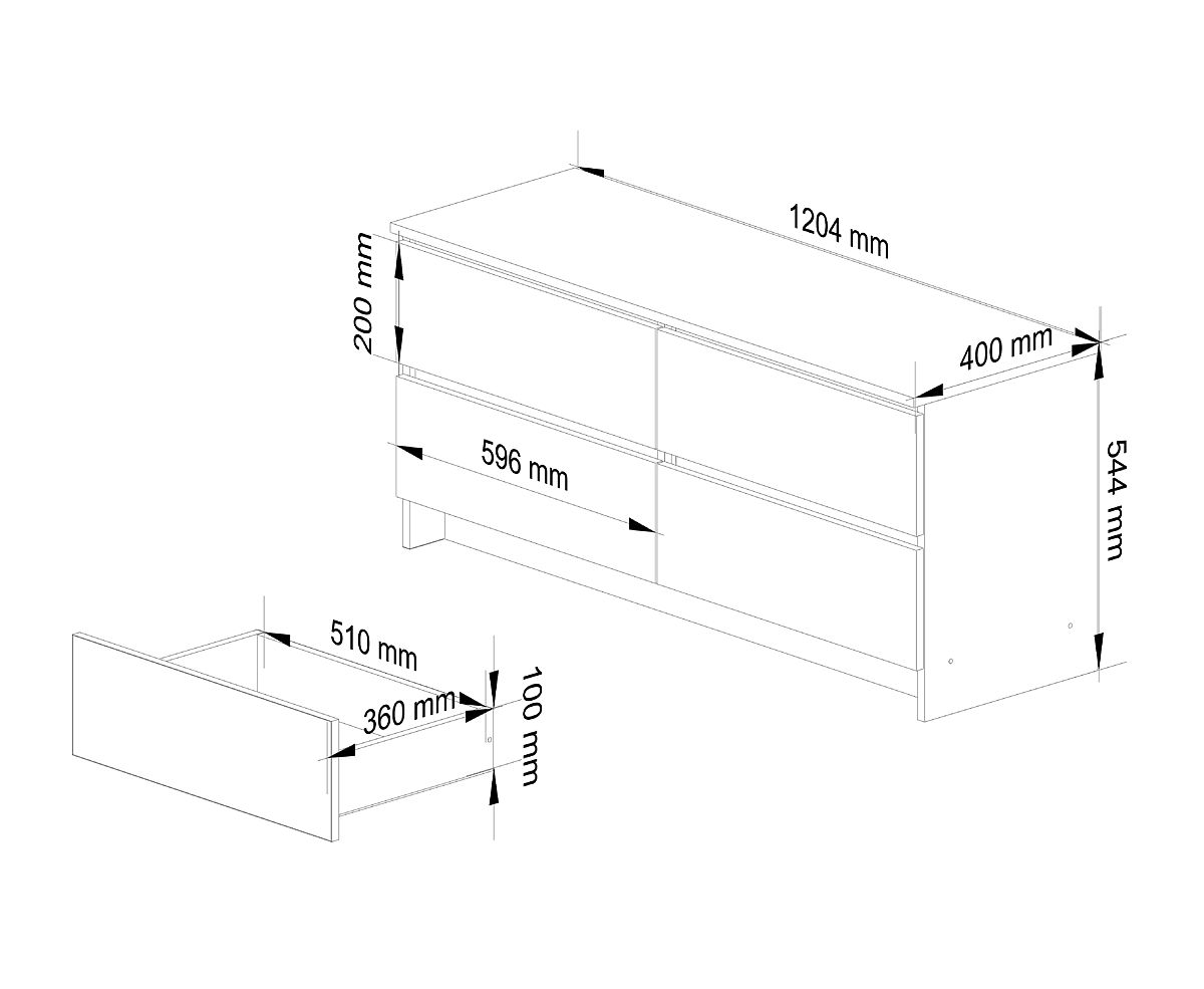 Commode en panneau stratifié avec 4 tiroirs et finition mat. .. plus