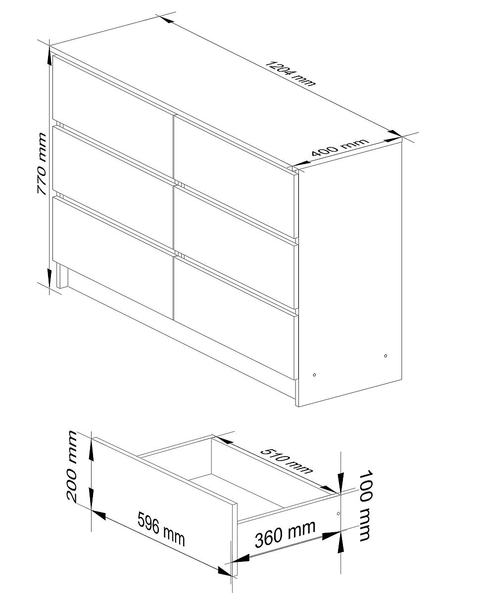 - Tiroirs coulissant sur rails métalliques- Bords plaqués avec bordure ABS assurant une haute protection contre les dommages