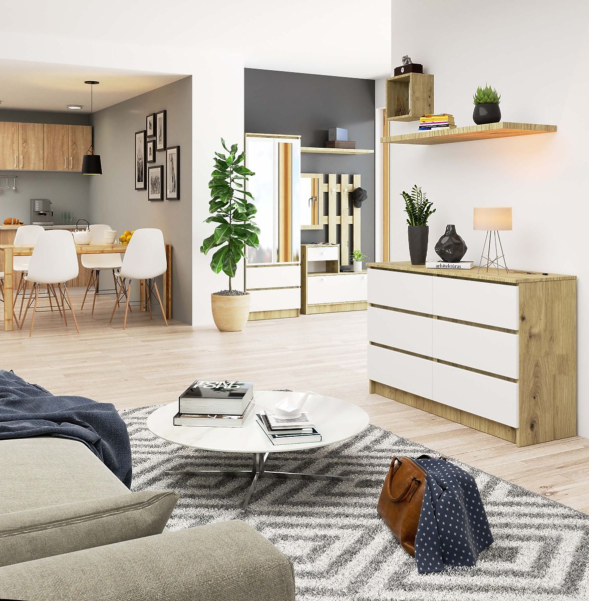 Banaby.fr » Meubles pour enfants / Commodes et armoires enfant / Commodes enfant / COMMODE K120 6TIROIRS CLP CHÊNE ARTISAN / BLANC