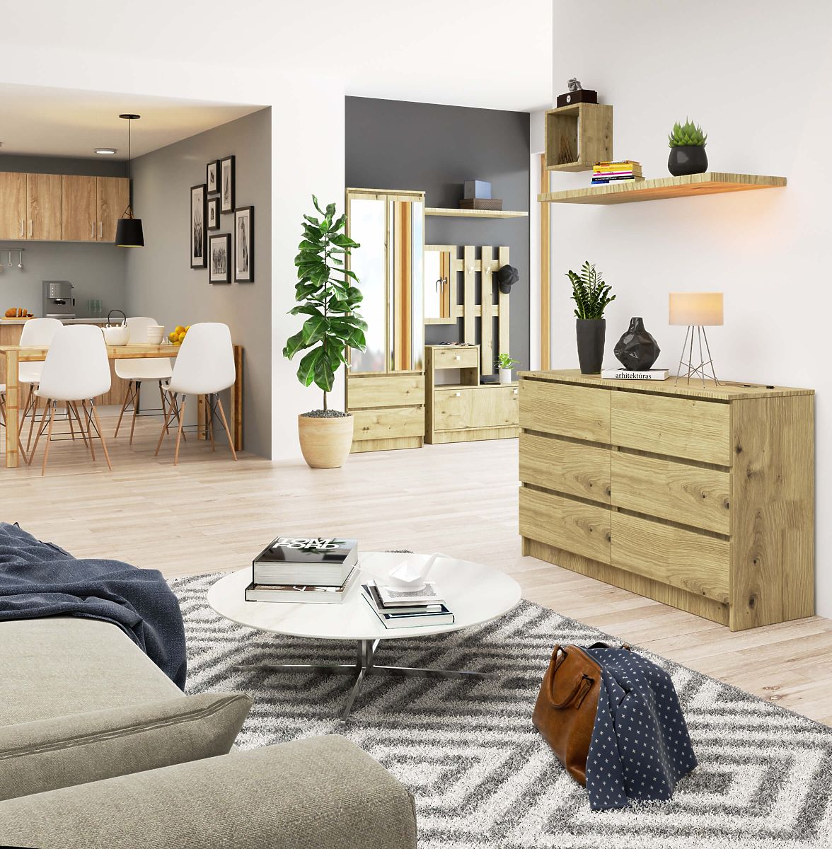 COMMODE K120 AVEC 6 TIROIRS Fabriquée en panneau laminé de 16 mm d'épaisseur résistant à l'usure.