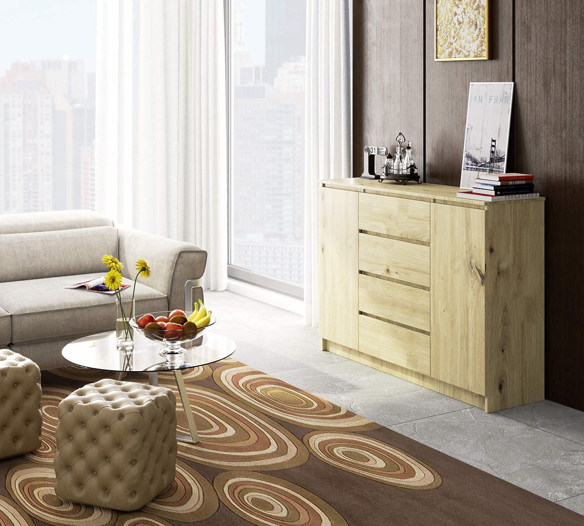COMMODE K140 2 PORTES 4 TIROIRS