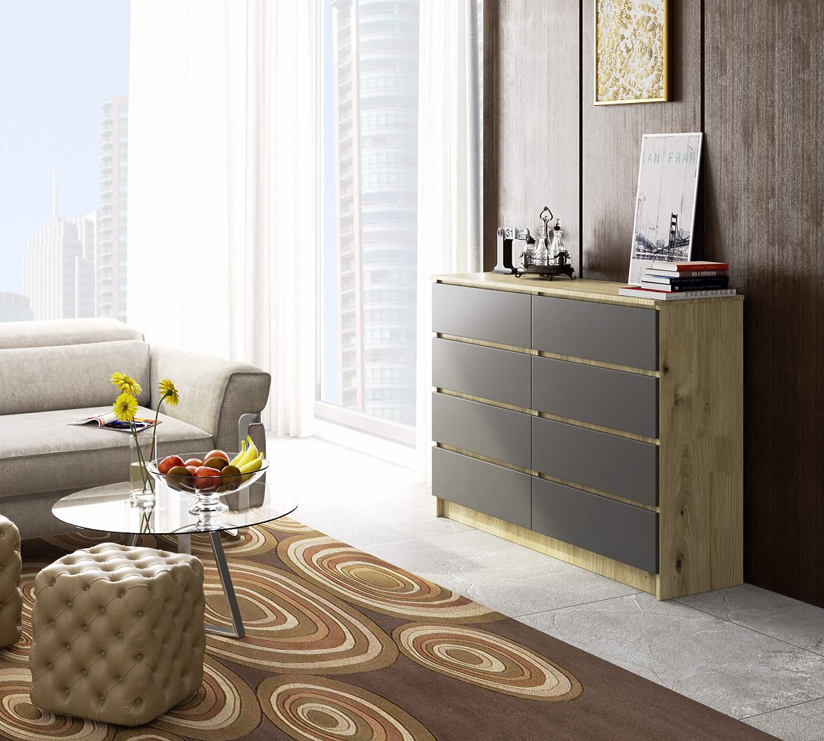 Banaby.fr » Meubles pour enfants / Commodes et armoires enfant / Commodes enfant / COMMODE K140 8TIROIRS CLP CHÊNE ARTISAN / GRIS