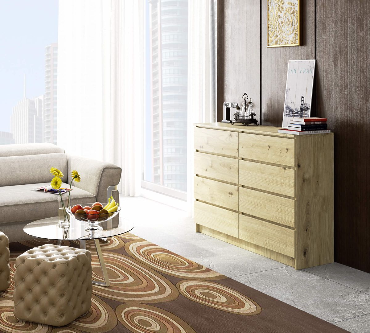 Commode en chêne Artisan avec 8 tiroirs et montage facile. .. plus