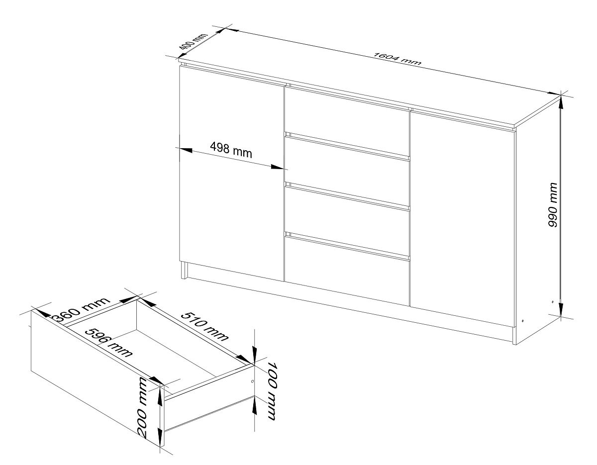 COMMODE K 160cm 2 PORTES 4 TIROIRS