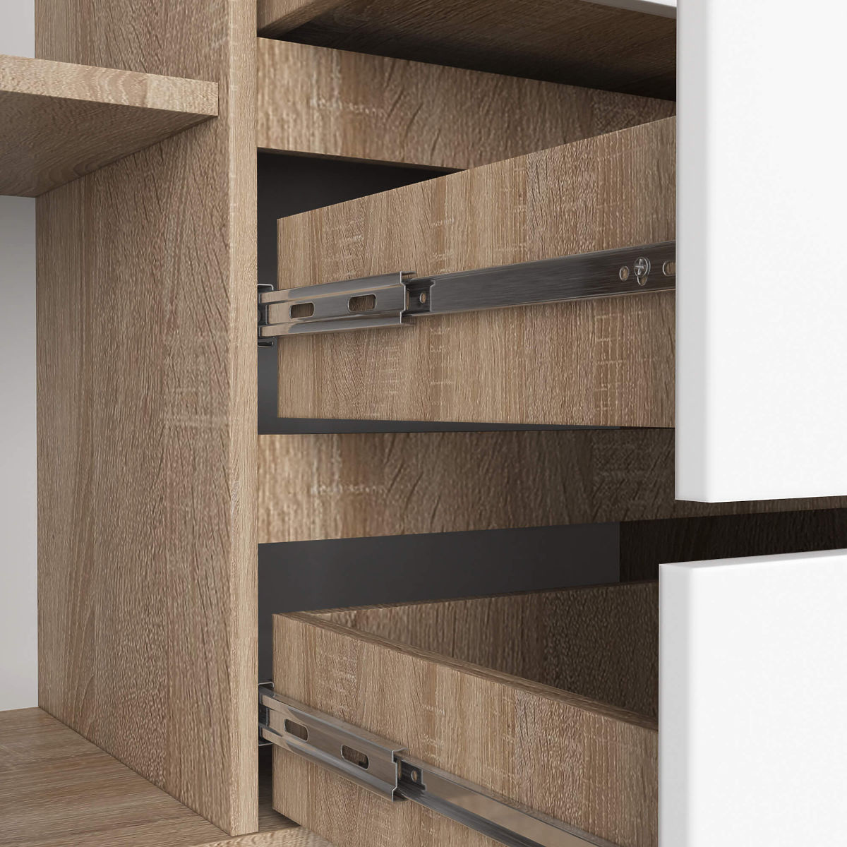 - Tiroirs se déplaçant sur glissières à billes en métal - Bords plaqués avec bande ABS assurant une haute protection contre les dommages