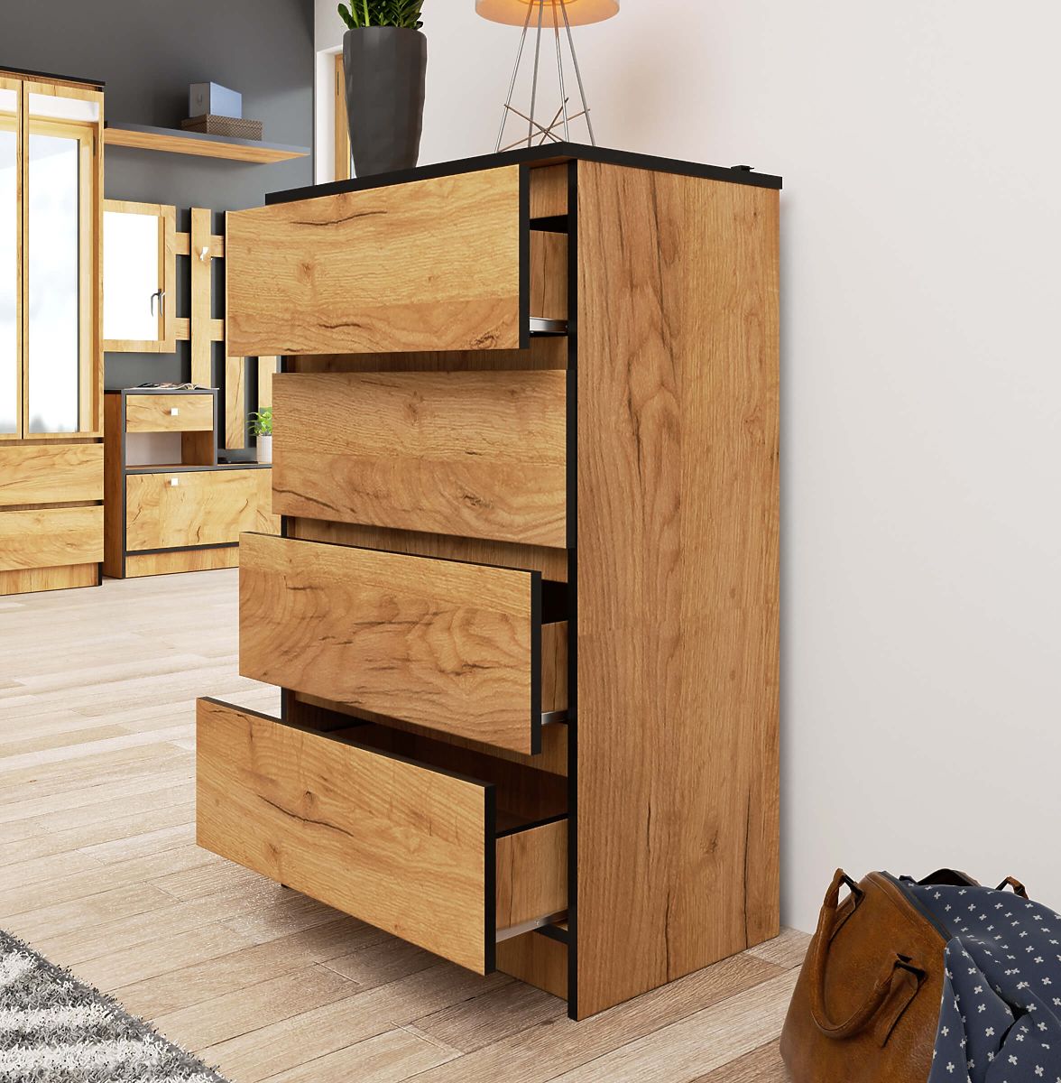 Commode en chêne Craft avec 4 tiroirs et montage facile. .. plus