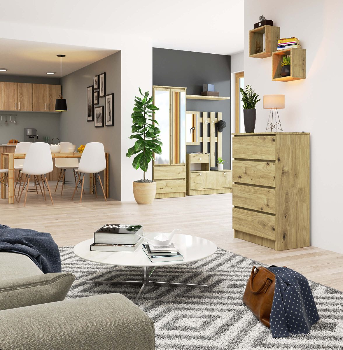 Commode en chêne Artisan avec 4 tiroirs et montage facile. .. plus