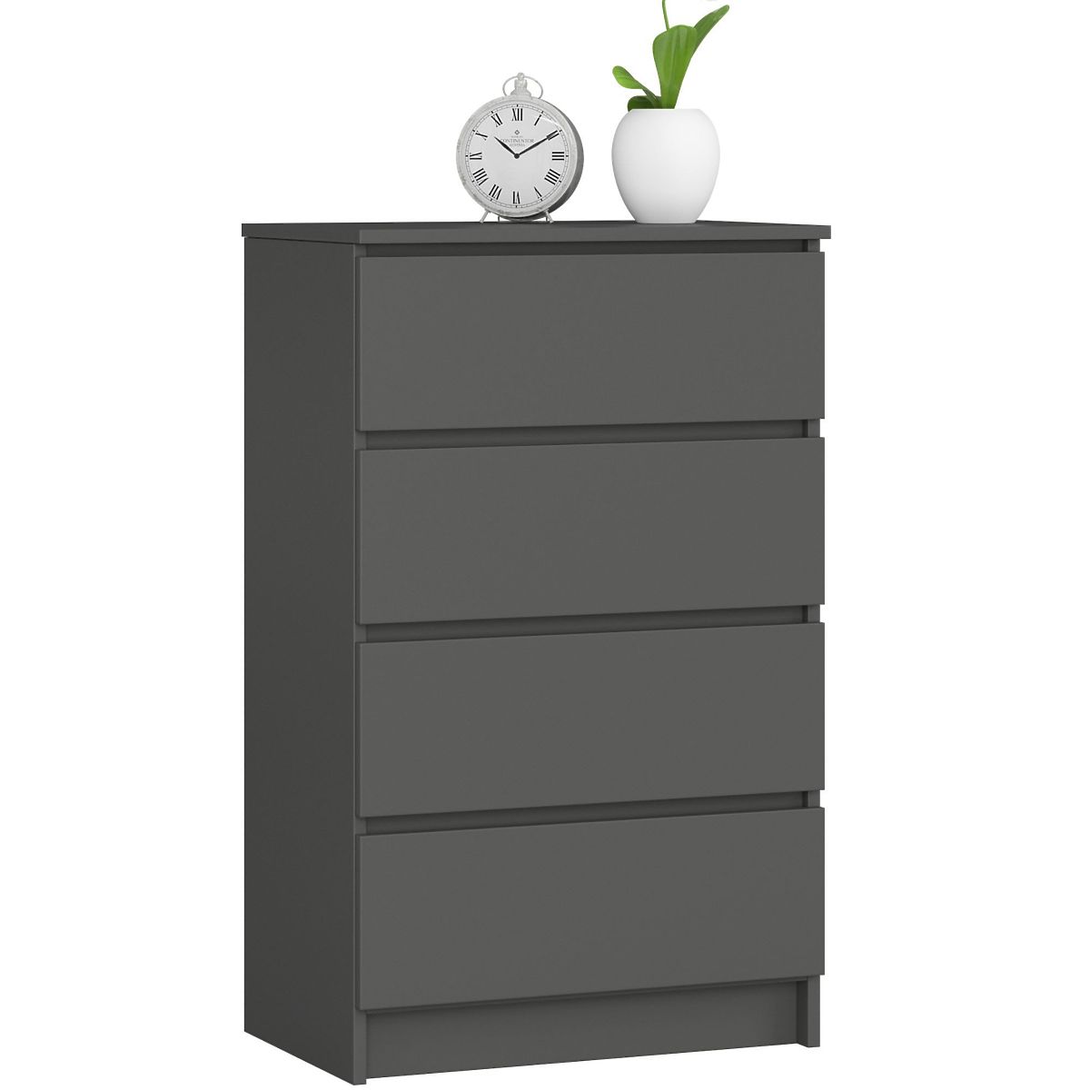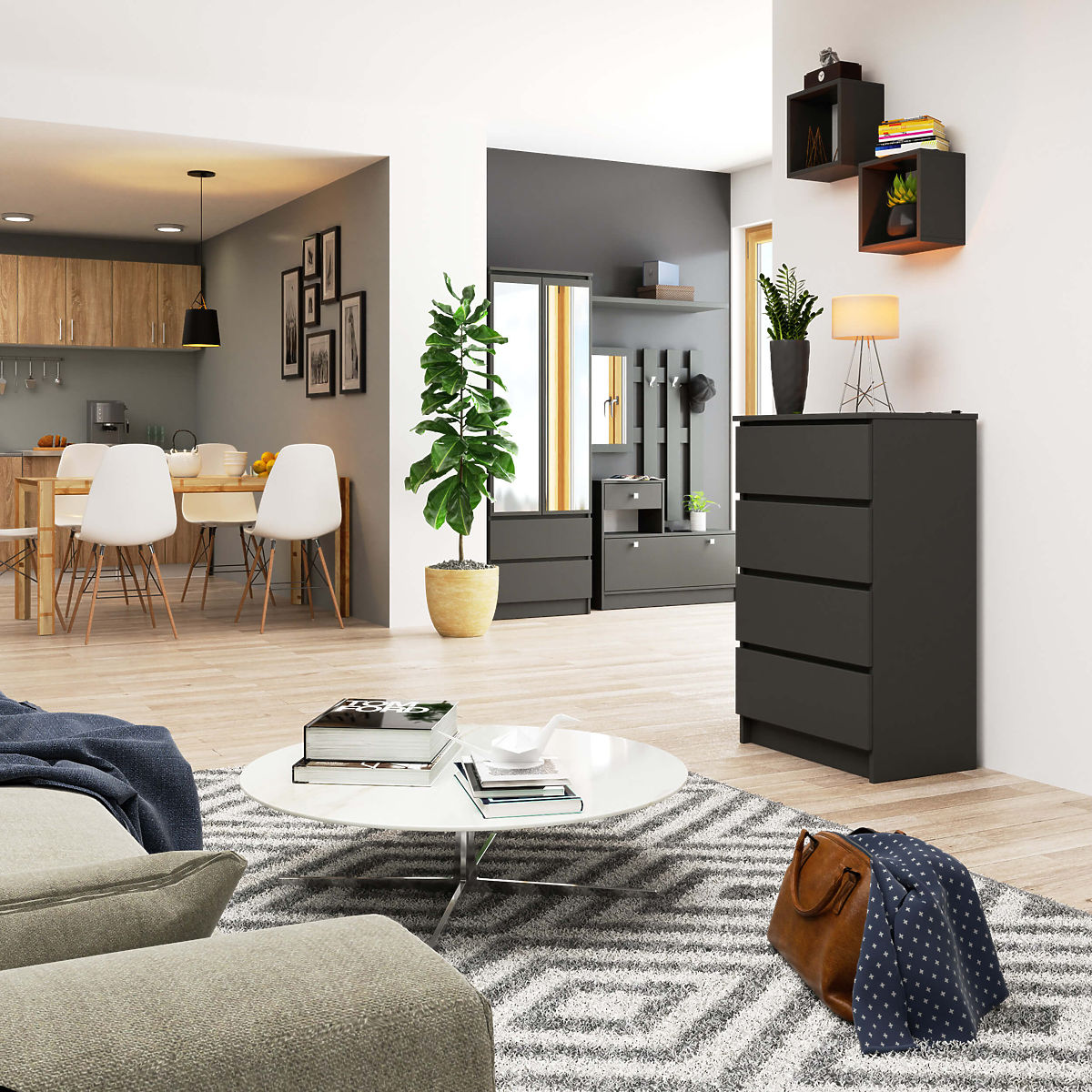 Commode en gris graphite avec 4 tiroirs et montage facile. .. plus