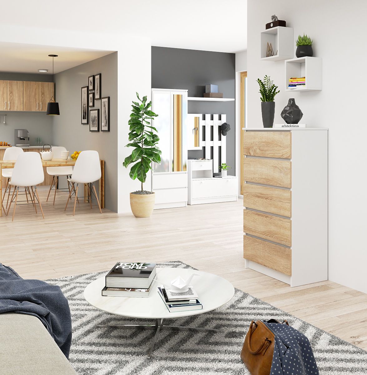 COMMODE K60 5TIROIRS CLP PK BLANC / SONOMA