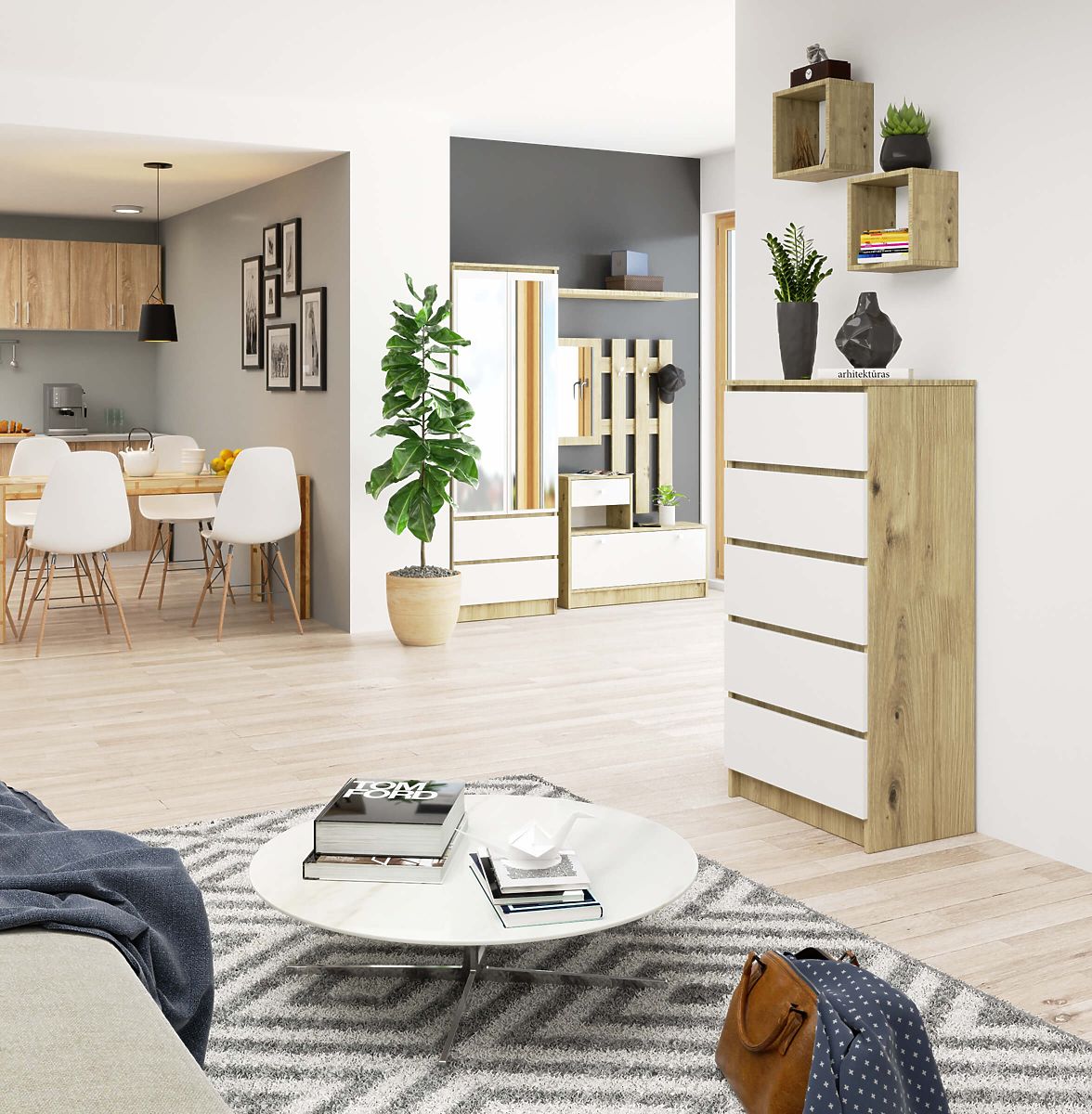 COMMODE K60 AVEC 5 TIROIRS Fabriquée en panneau laminé de 16 mm résistant à l'usure.