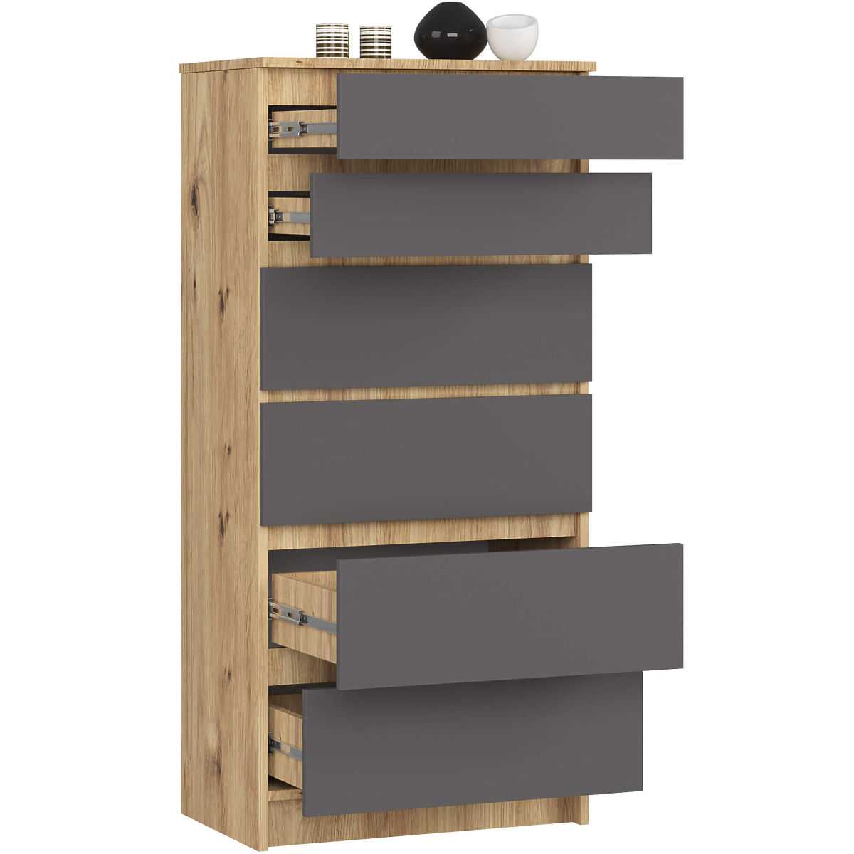 COMMODE K60 6TIROIRS CLP PK CHÊNE ARTISAN / GRIS