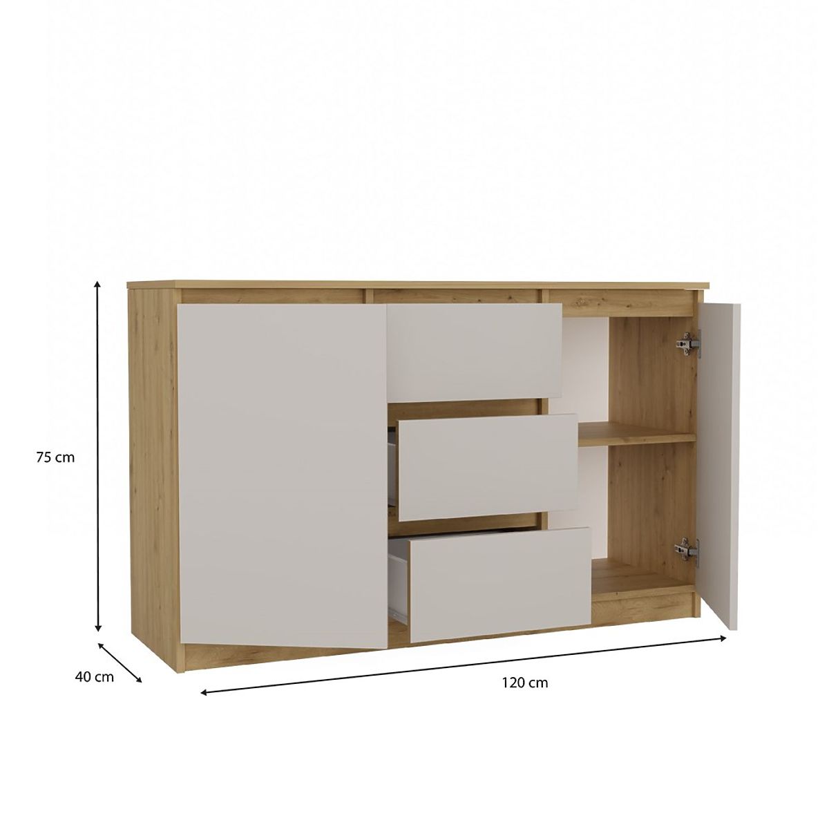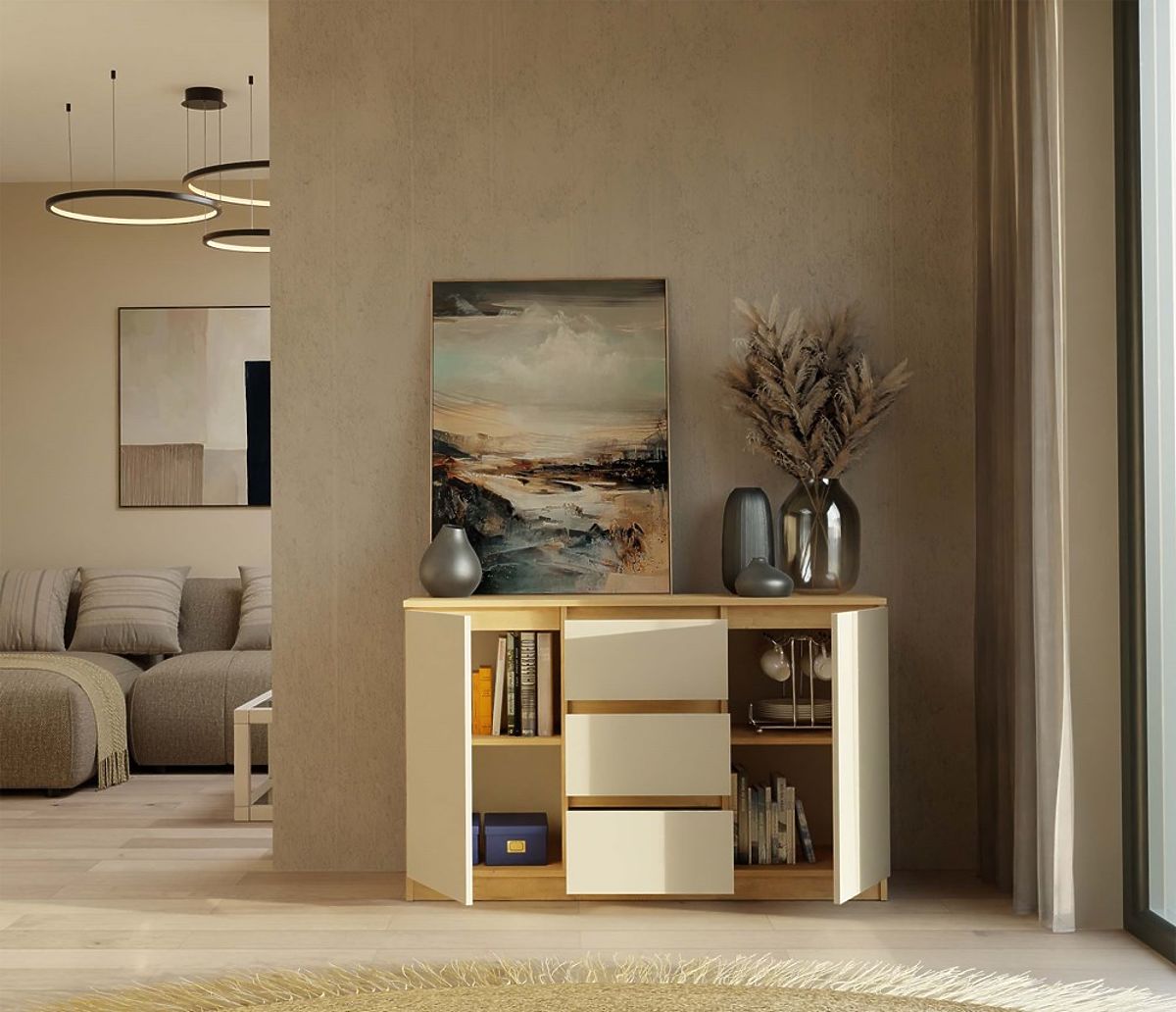 Commode moderne avec 2 portes et 3 tiroirs en Chêne Artisan et Kashmir. .. plus