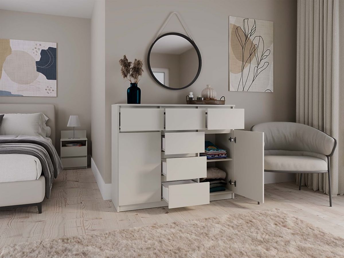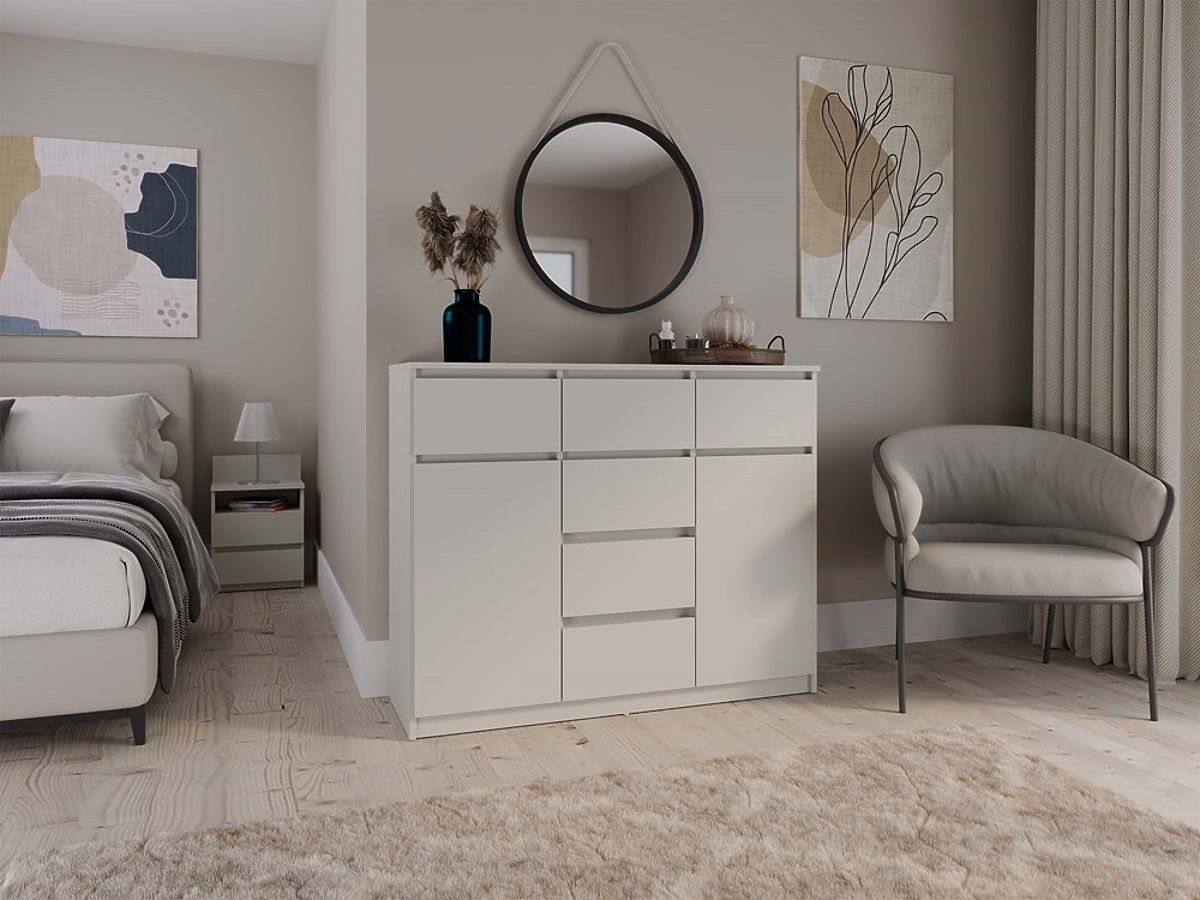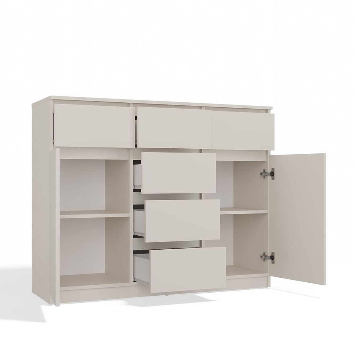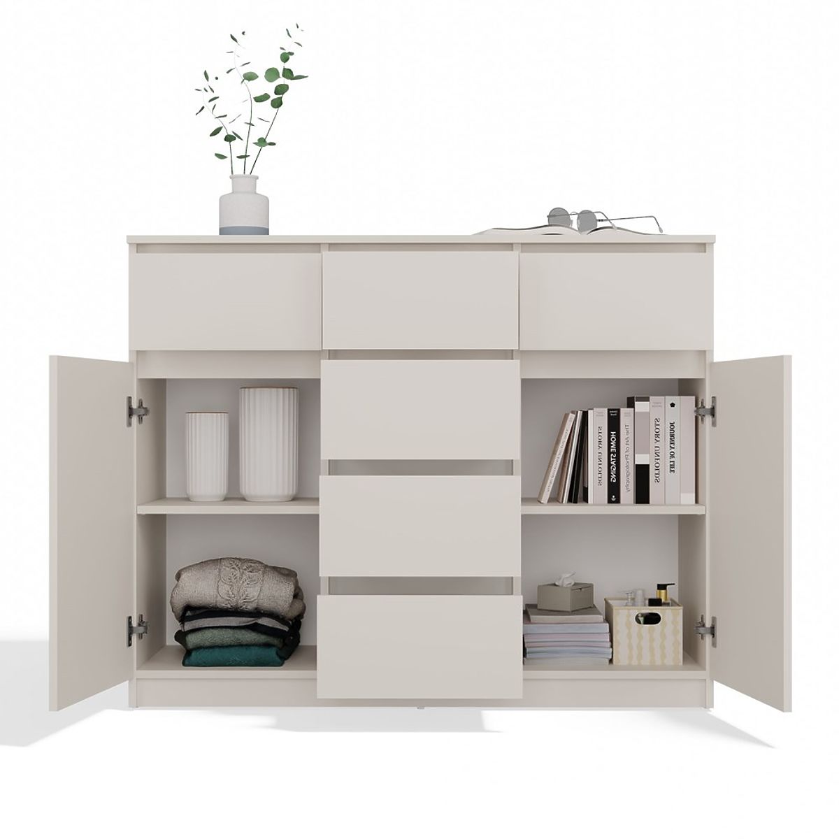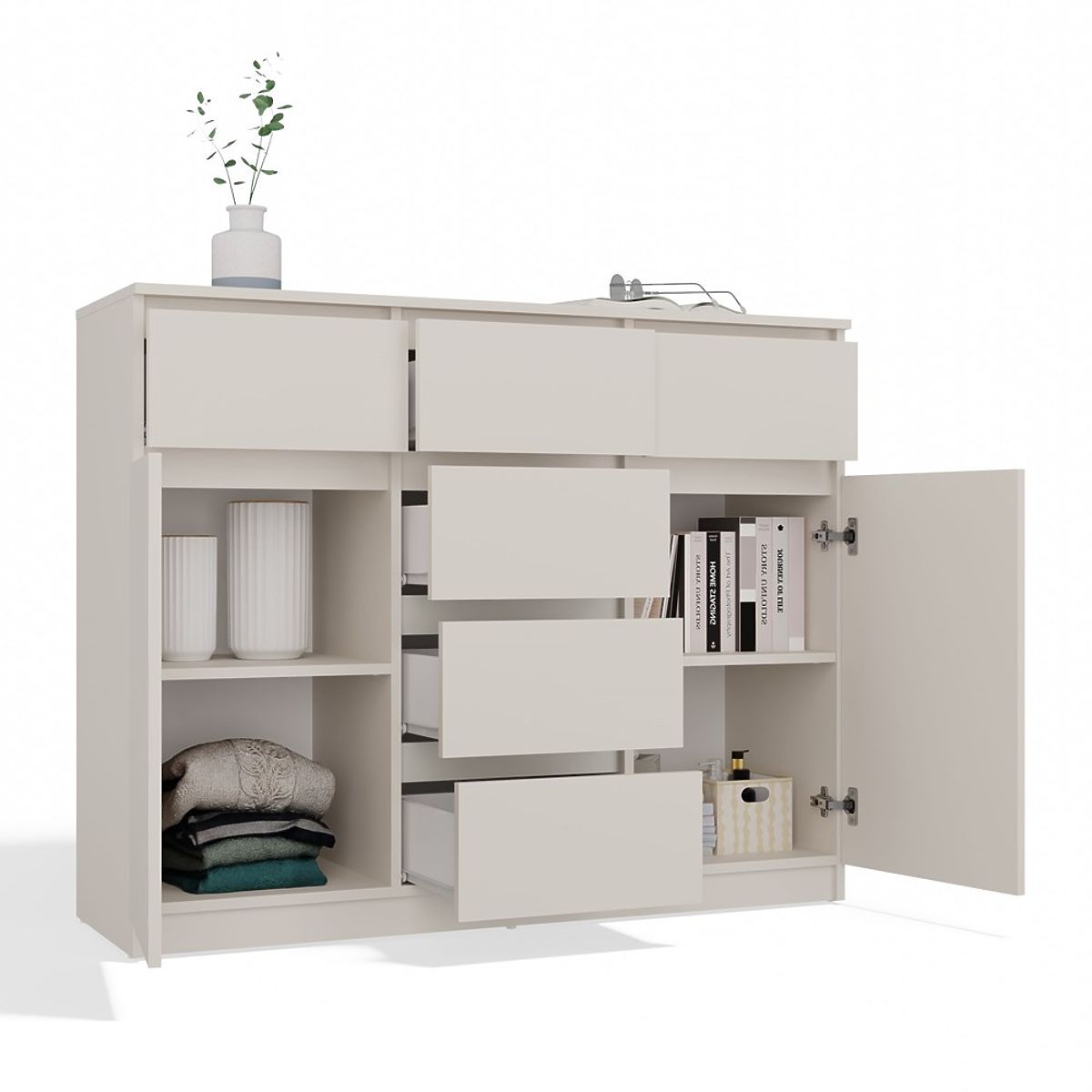 Commode moderne avec 2 portes et 6 tiroirs en couleur cachemire. .. plus