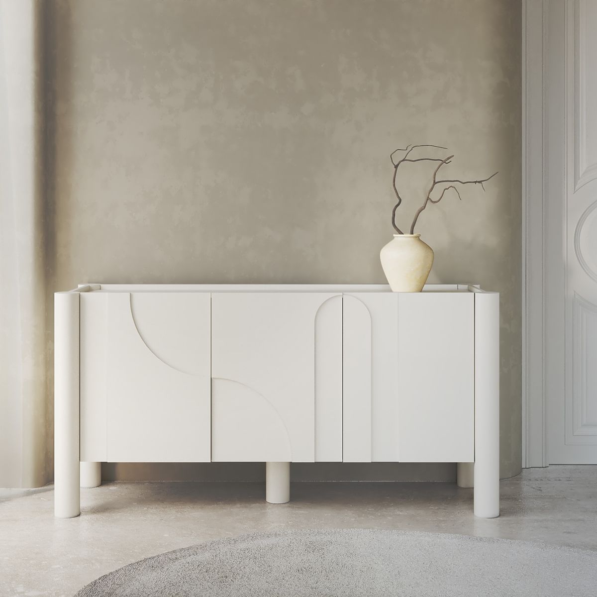 Commode trois portes blanche avec façade fraisée artistique. .. plus