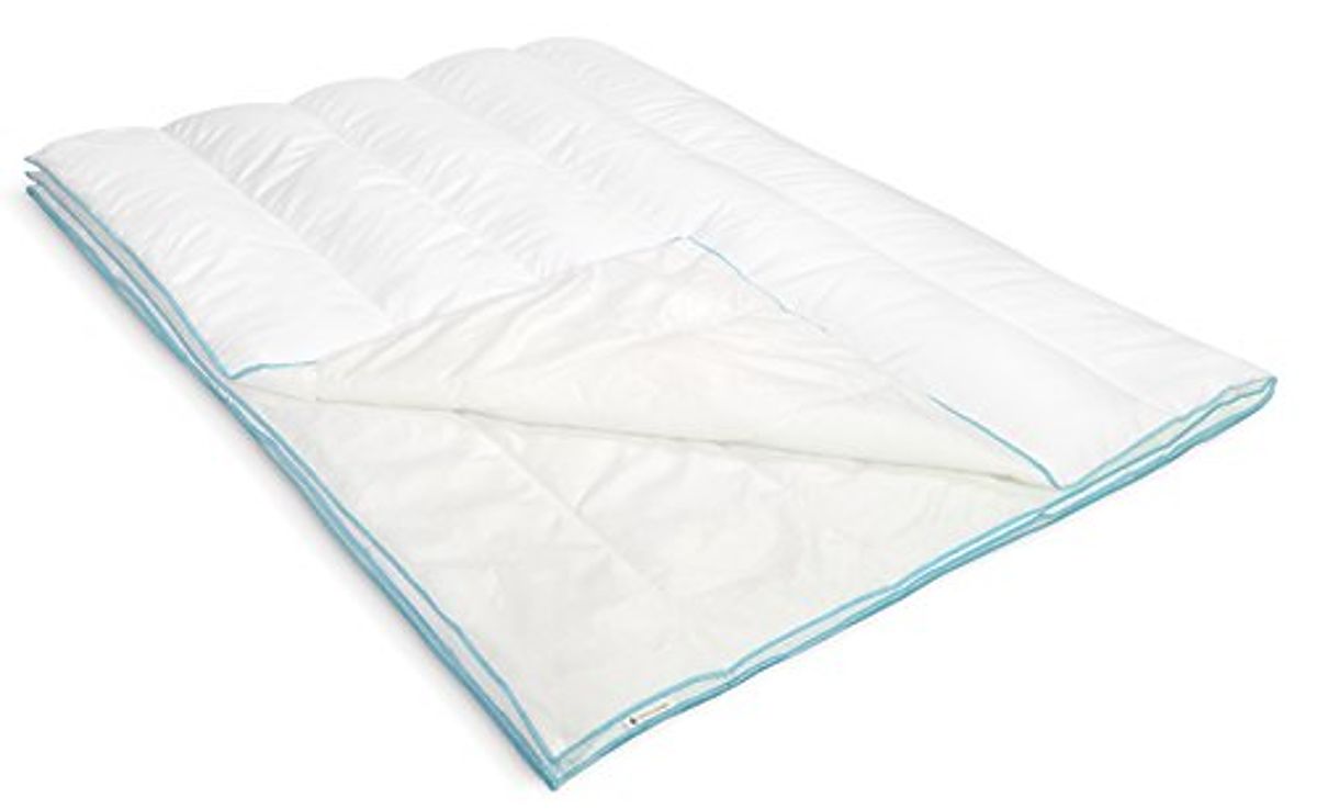 Couette d'été blanche en polyester avec motif rayé. .. plus