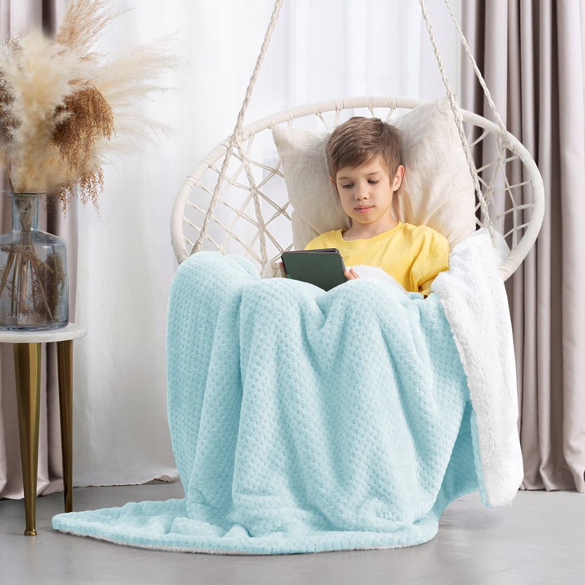 Couverture bleue SHLEEPY avec motif jacquard pour confort et élégance. .. plus